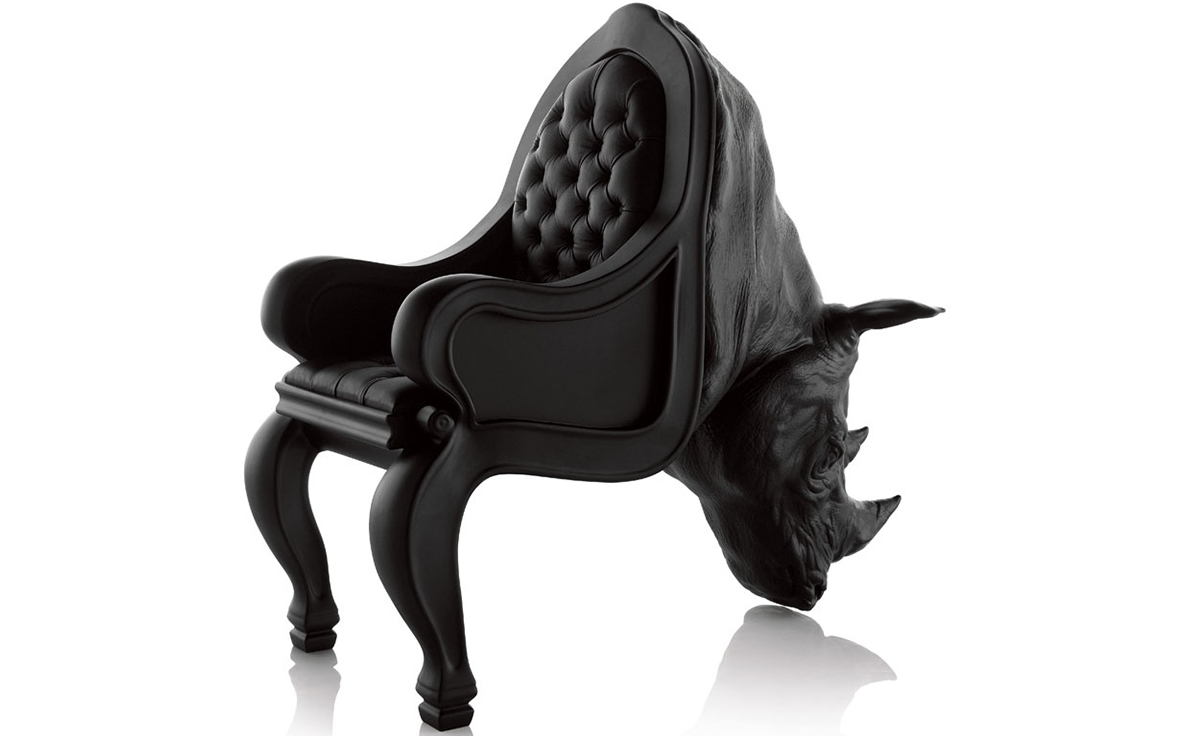 西班牙设计师 Maximo Riera 设计了一组包括章鱼、犀牛、海象、狮子等在内的 15 件动物造型座椅系列皮椅。这个系列的动物椅集合了不同的物种,从哺乳动物到爬行动物,甚至包括昆虫。每个设计都保留了动物的自然活力,同时又准确还原动物的外观特征。这些动物椅的初衷是一种尝试,希望以动物的栖息来反映和捕捉大自然的美,并向我们星球上的整个动物王国致敬。设计师除了表现动物的野性美,也在善意的提醒人们要维持生态的平衡,尤其对濒危物种多加关注,以实现人与自然的相互依赖和谐共存。Rhino Chair(犀牛椅)是他之前一个系列家具作品的延续。这一系列作品将家具和动物结合到一起,每件家具的主要部件都装饰有一种动物。这次的作品和之前设计的“章鱼椅”有着许多相似之处。“犀牛椅”内部有一个框架用以支撑整个椅子的重量并加强稳定性和平衡性。 在这次的创作中,Maximo Riera 选用犀牛这种动物来表现自然的能量和威力。当设计尚停留在概念阶段时,Maximo Riera 意识到创作中的最大障碍是合适的比例。制作完成的犀牛椅具有极强的雕塑感,并拥有“王座”一般十分优越的比例,凸显了动物本身尊贵霸气的品质。