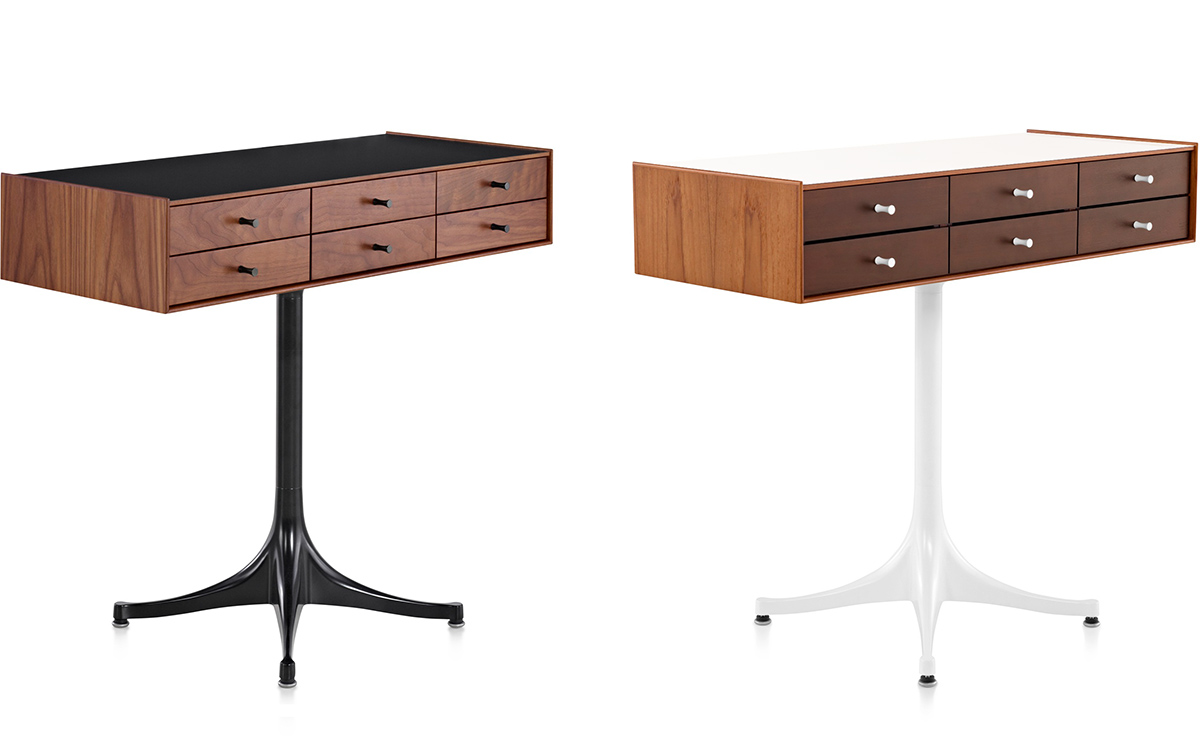 乔治·尼尔森(George Nelson)是美国极具影响力的建筑师、家具设计师和产品设计师,日本对George Nelson有着深远的影响。在他于1951年第一次到东京旅行,以及之后在那里的十几年,George Nelson迷上了日本的所有东西。这种影响最明显的的他于1952年设计的迷你箱。迷你箱的神奇处是可用来存放各种物品,是一个很多小抽屉小储物柜,方便您分类摆放各种生活物品。尼尔森设计的迷你箱最让人惊奇的是它几乎可以摆放在任何房间,无论是卧室,办公室,客厅等等任何您需要的地方,美观且不失和谐。每个抽屉都是木工们细心的安装设计,以保证高品质。抽屉采用胡桃或樱桃木皮贴面,基材为环保高密度板环保油漆喷涂、铸铝烤漆可调节脚架(4星级铝底座)、或玻璃钢一体成型脚架,抽屉贴心的配置有金属旋钮,方便打开与关上。