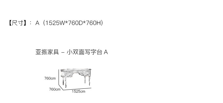 亚振家具 - 小双面写字台 产品尺寸/示意图