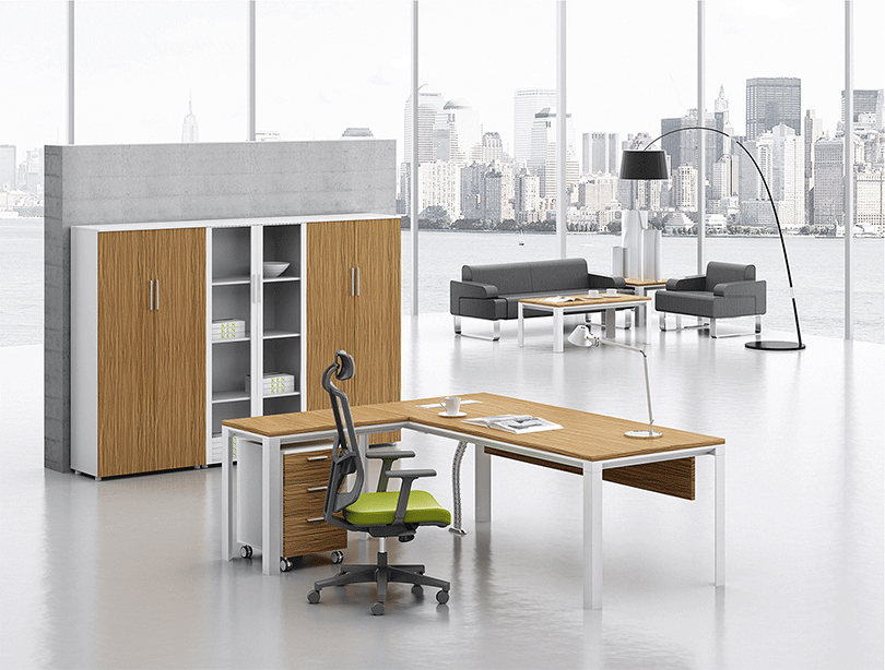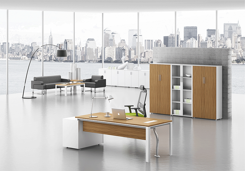 | 移动柜,可带软包方便沟通时使用,小家具,大用途 | 桌子搭配文件柜,更大的储物空间 |