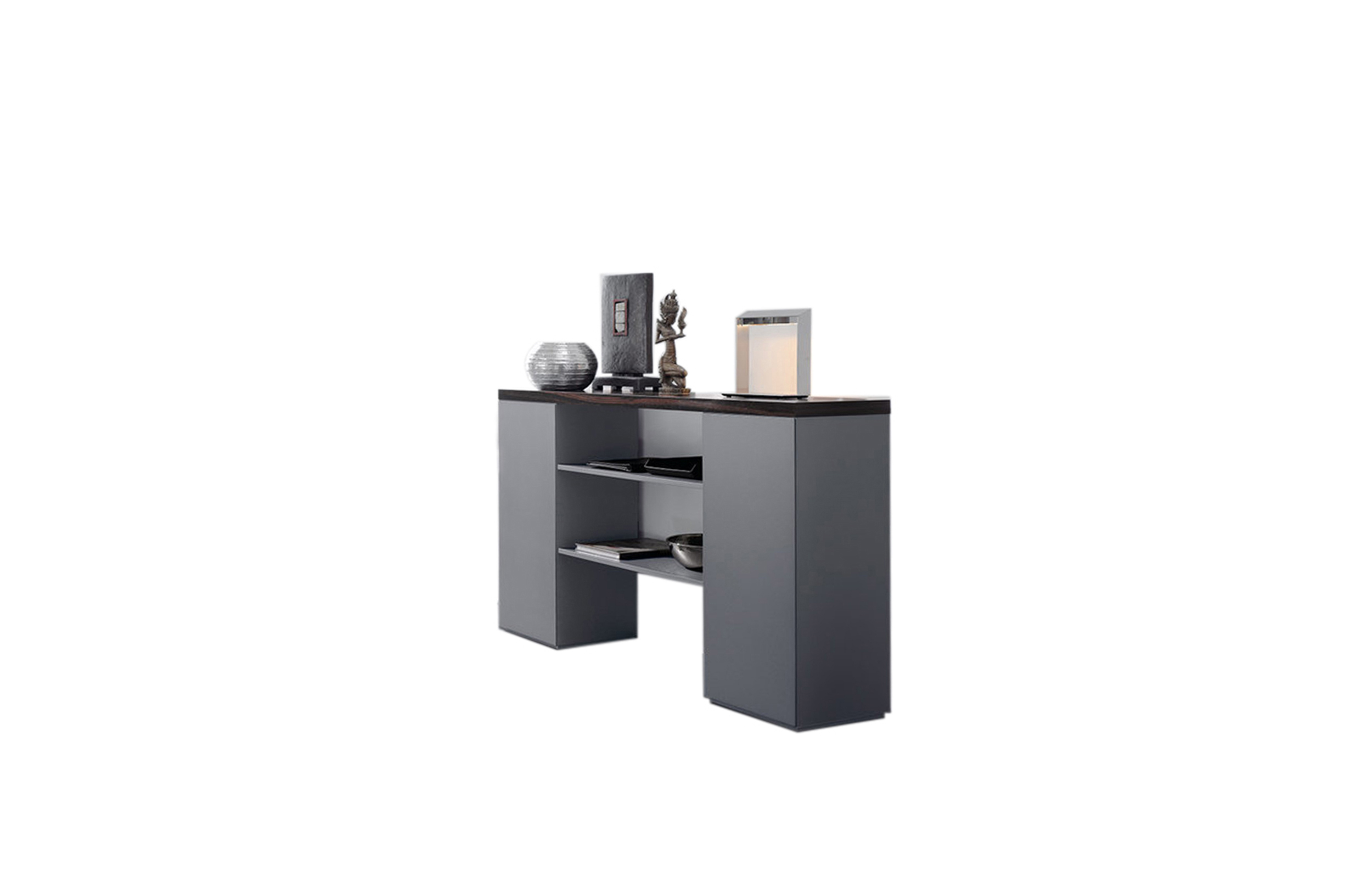 桌面和侧面,水平和垂直形成一个均匀的结构,是Headoffice Mono系列会议项目设计团队所执行的结构概念。强大的线条与精选材料的优雅相结合。由侧面和桌面所制成的直角,中间的桌子上有醒目皮革包裹的面板,如果有需要,可以使用滑动皮板来打开集成线路。电缆布线隐藏在桌面和副柜之间。