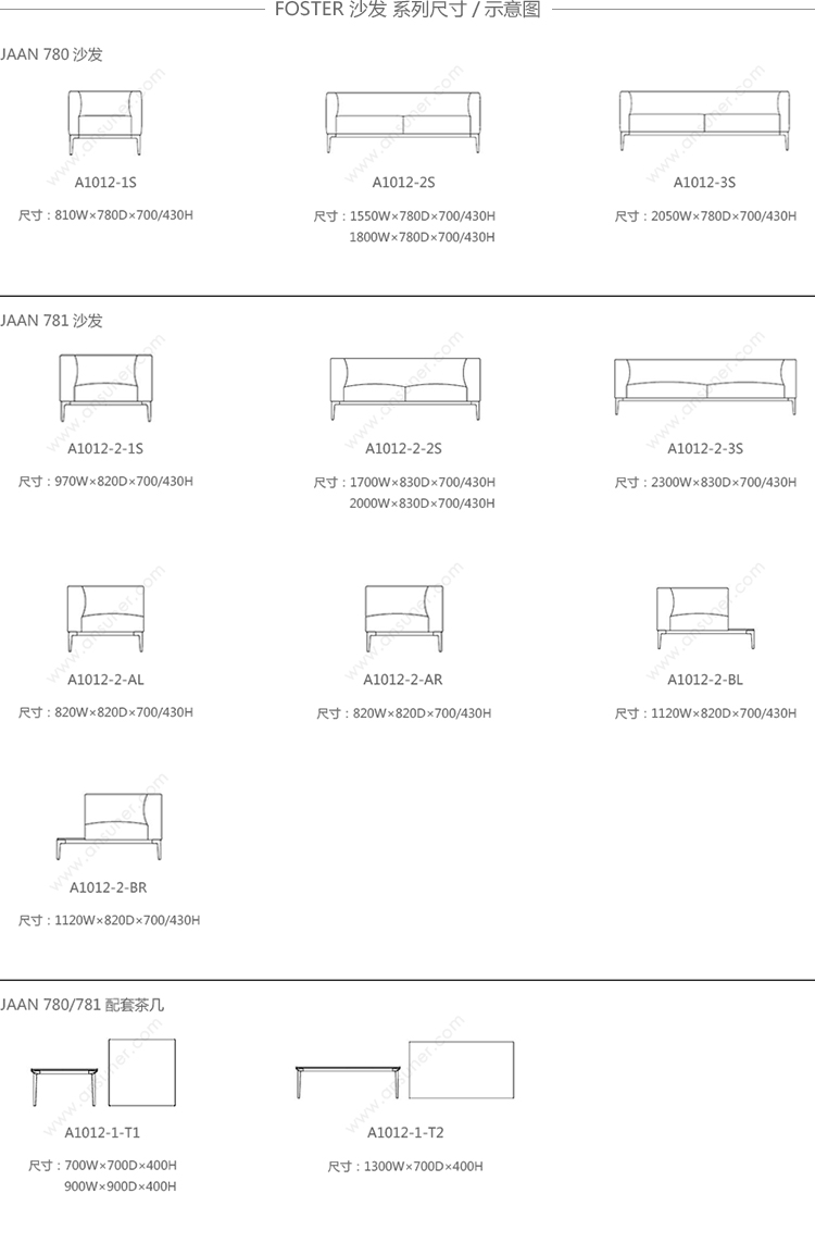810W*780D*700/430H