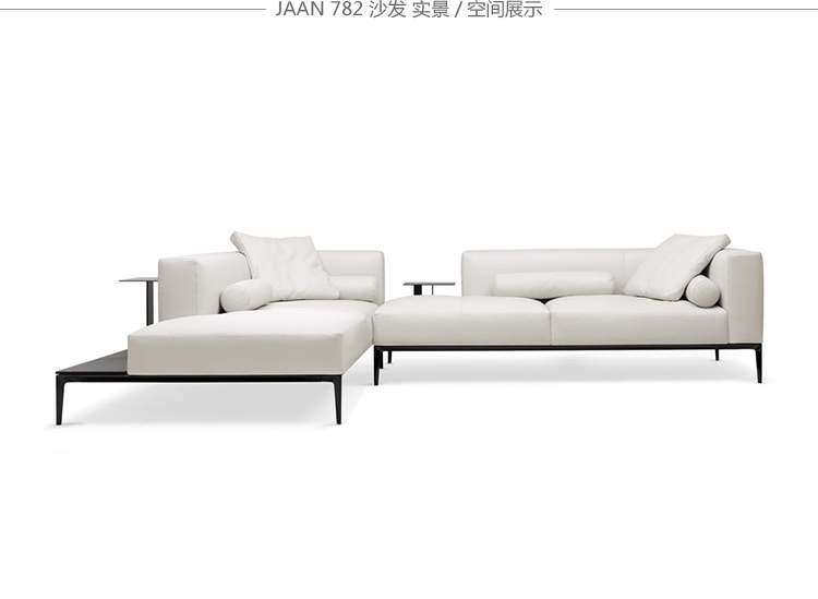 现代世界性的优雅生活方式。沙发的柔软可以使你舒适的陷在沙发里,满足了你对沙发安逸的想象。精致的框架在黑色的哑光漆作用下显得格外清秀。同时,为Jaan Living的宽敞的软垫搭配也做好了准备舞台。别致的,诱人的,与此同时,皮革的随意外观,与室内的灯光填充相得益彰。玻璃板或马鞍皮革的木板,对于日常小憩或者闲暇的阅读提供了非常方便的场所。Jaan的整体结构也提供了更大的座位空间,最吸引人的地方在于,两种结构都可以很从容的组合起来。对于新的几何图形和场所,适合于个人偏好和摆设吗。很自然的优雅。