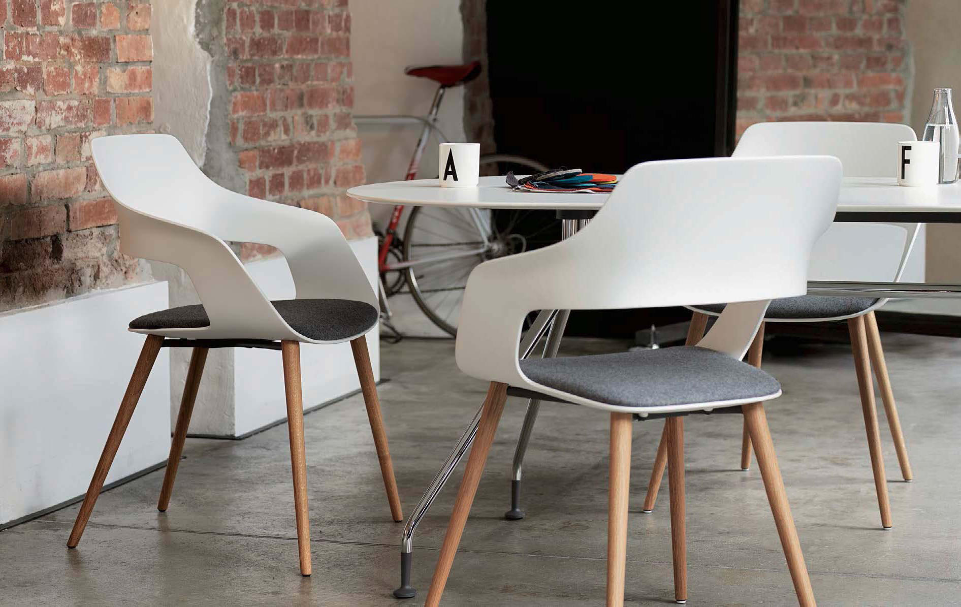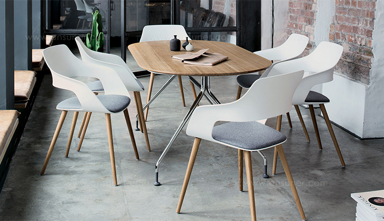 对于Wilkhahn来说,设计师马库斯Jehs和jurgen Laub已经设计出了一张椅子和桌子,这是一个完美的组合。它叫做Occo。Occo结合了巨大的通用性和大量的设计选项,设计语言清晰且可立即识别。背部和两侧的凹处的特殊形状允许椅子堆叠(当一个镀铬的、四腿的金属框架被选中时),同时也提供了高超的坐舒适性。座椅本身是非常坚硬的,但由于它的形状和不同的材料的不同,它的背部非常灵活。