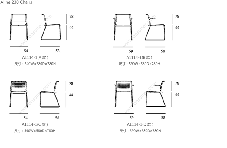 Aline 233/1 培训椅 系列尺寸/示意图
