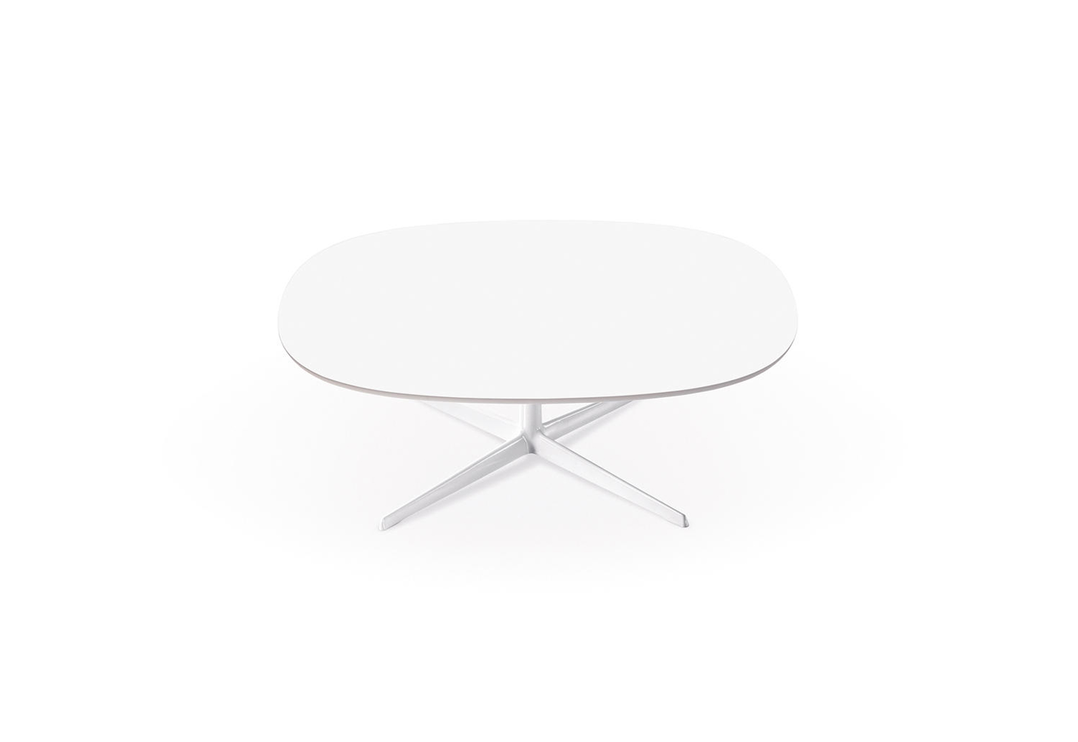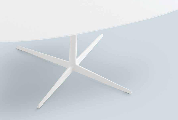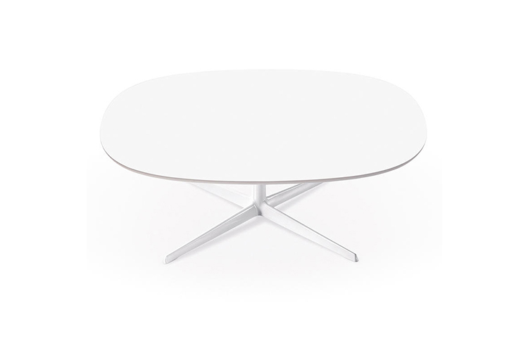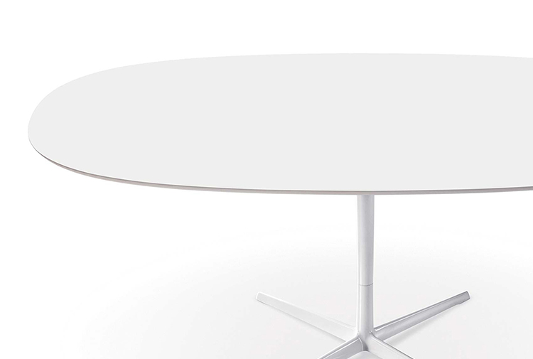 咖啡桌粉末涂层铝4路基座和椭圆形或圆形顶部白色压花MDF(厚2.5厘米)或层压板FenixⓇ(厚2,6厘米)。高度:35厘米。