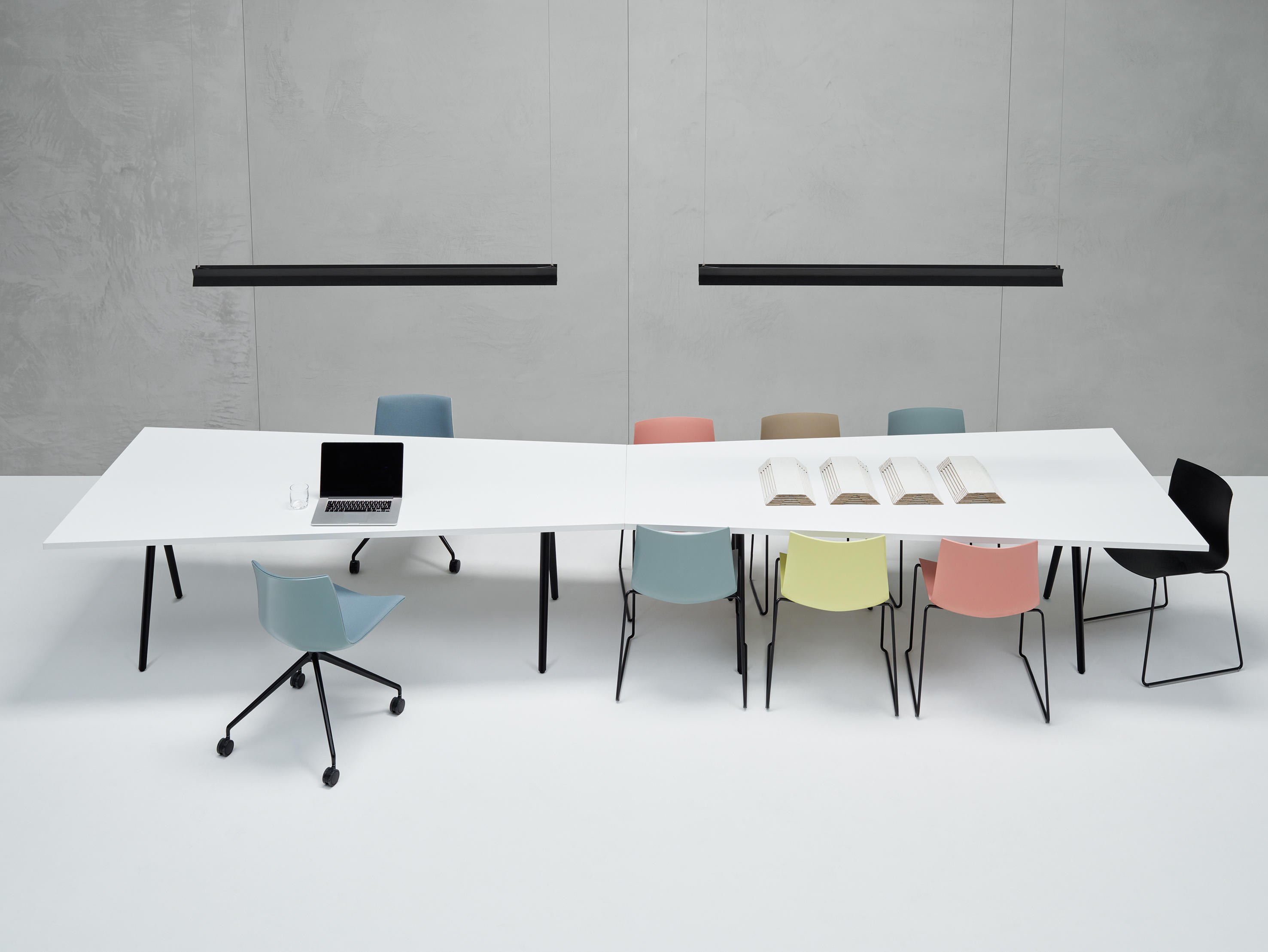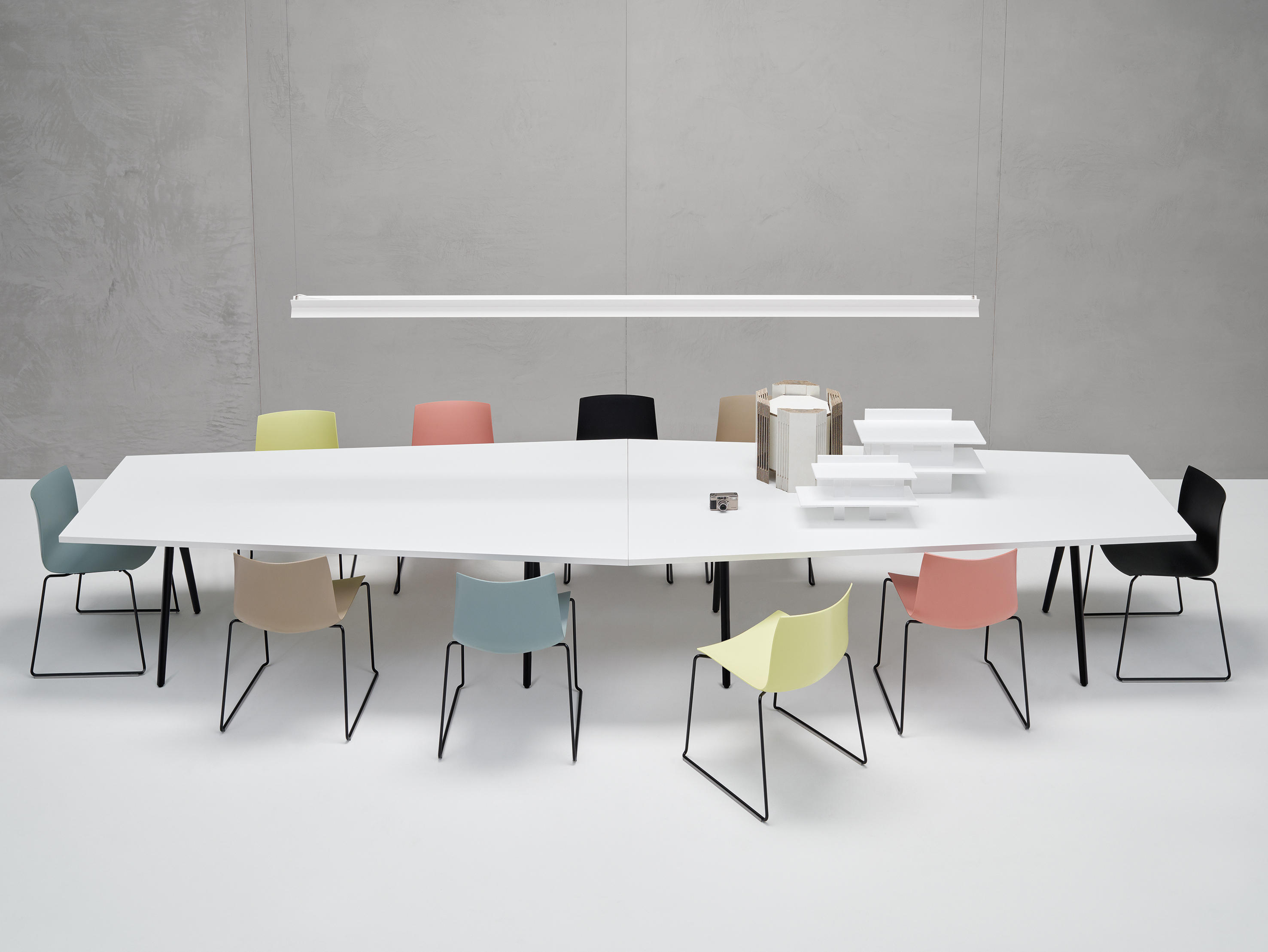 Meety由Lievore Altherr Molina设计,以表格形式模仿Catifa的适应性系统。灵感来自桥梁的建筑结构 - 强大而轻盈 - Meety的铝制支腿形成坚固的结构,顶部看起来漂浮或悬停。 Meety采用适应性强且动态的桌面系统,可实现最佳定制,Meety通过其铸铝支腿保留其独特的特性,可无缝集成到多种桌面选项中:尺寸,比例和材料。多样化的自定义功能可以为任何环境(家庭,工作和生活)提供量身定制的优雅系统。