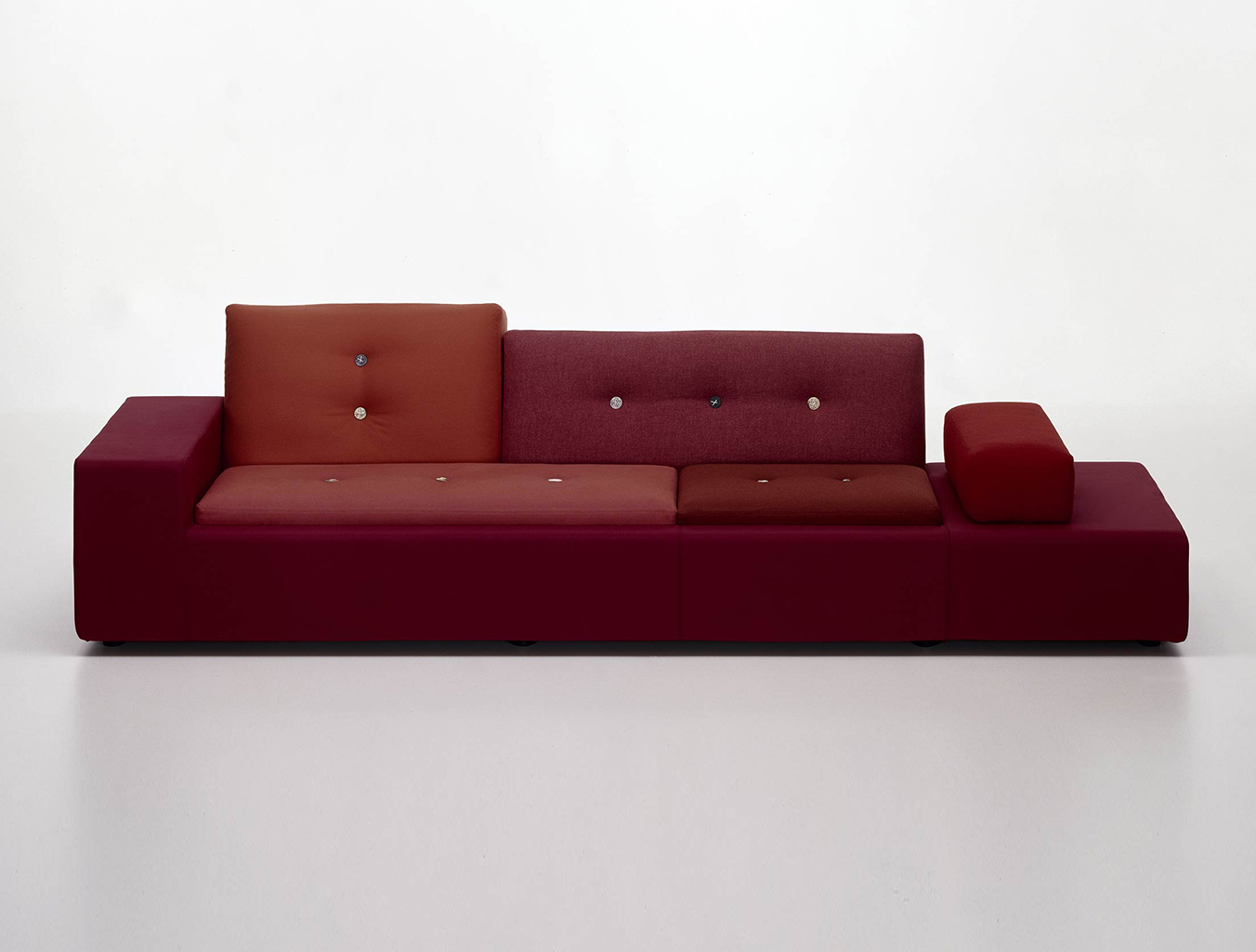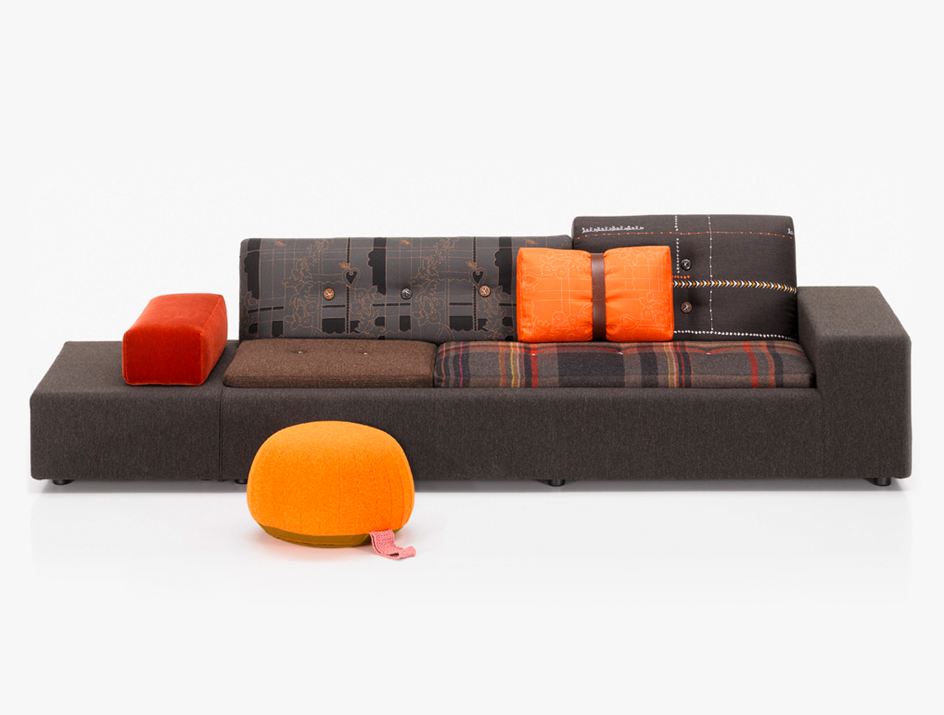 Hella Jongerius的Polder沙发在任何内饰中都创造了一个焦点:它的不对称形状和各种面料和颜色的靠垫赋予它独特的标志性外观。