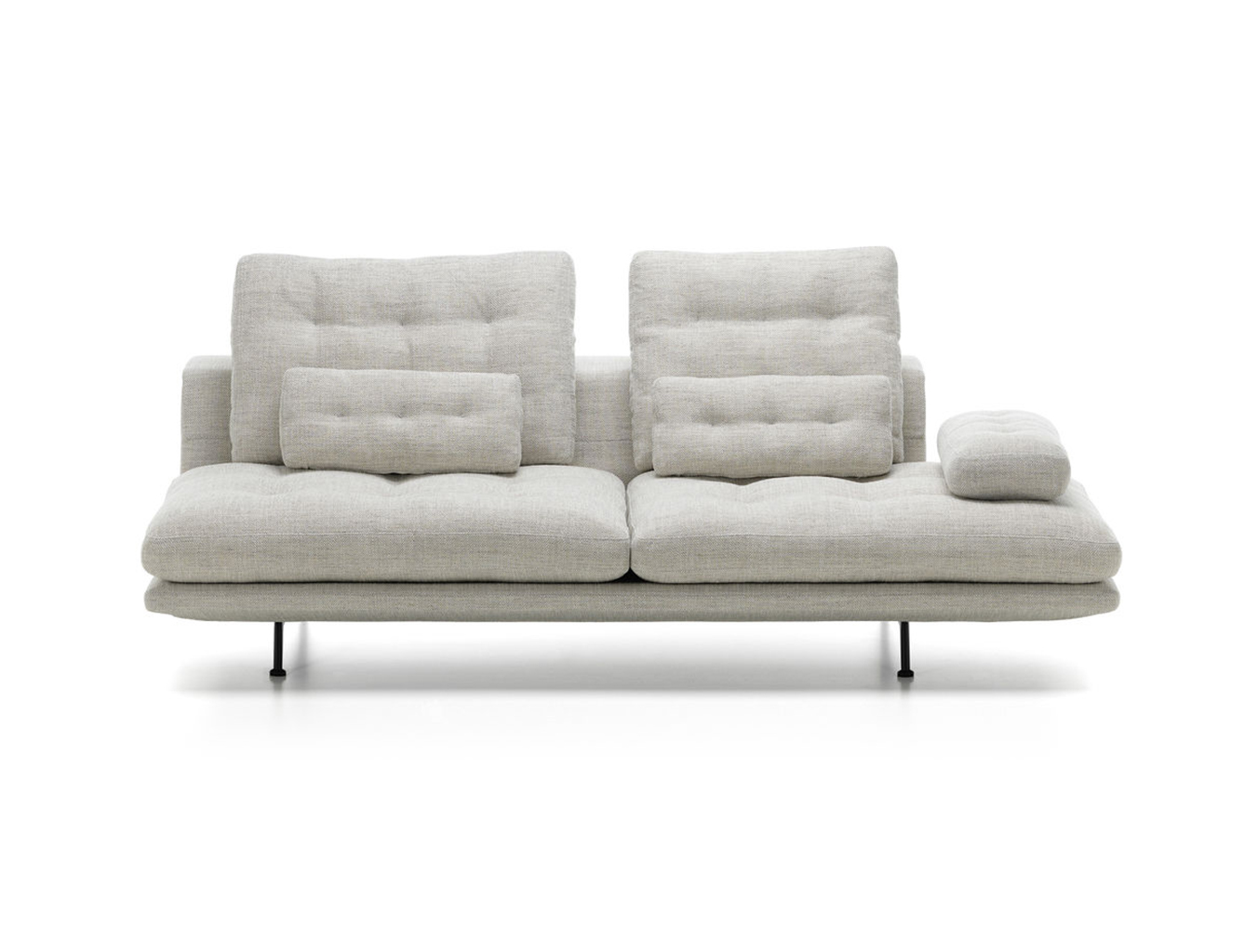 Grand Sofa酒店提供精选的面料,种类繁多。 与不同的元素,可变靠背,选择的垫子,抛光铝或粉末涂层的白色或黑色的基础饰面,这为个人座位安排开辟了多种可能性。