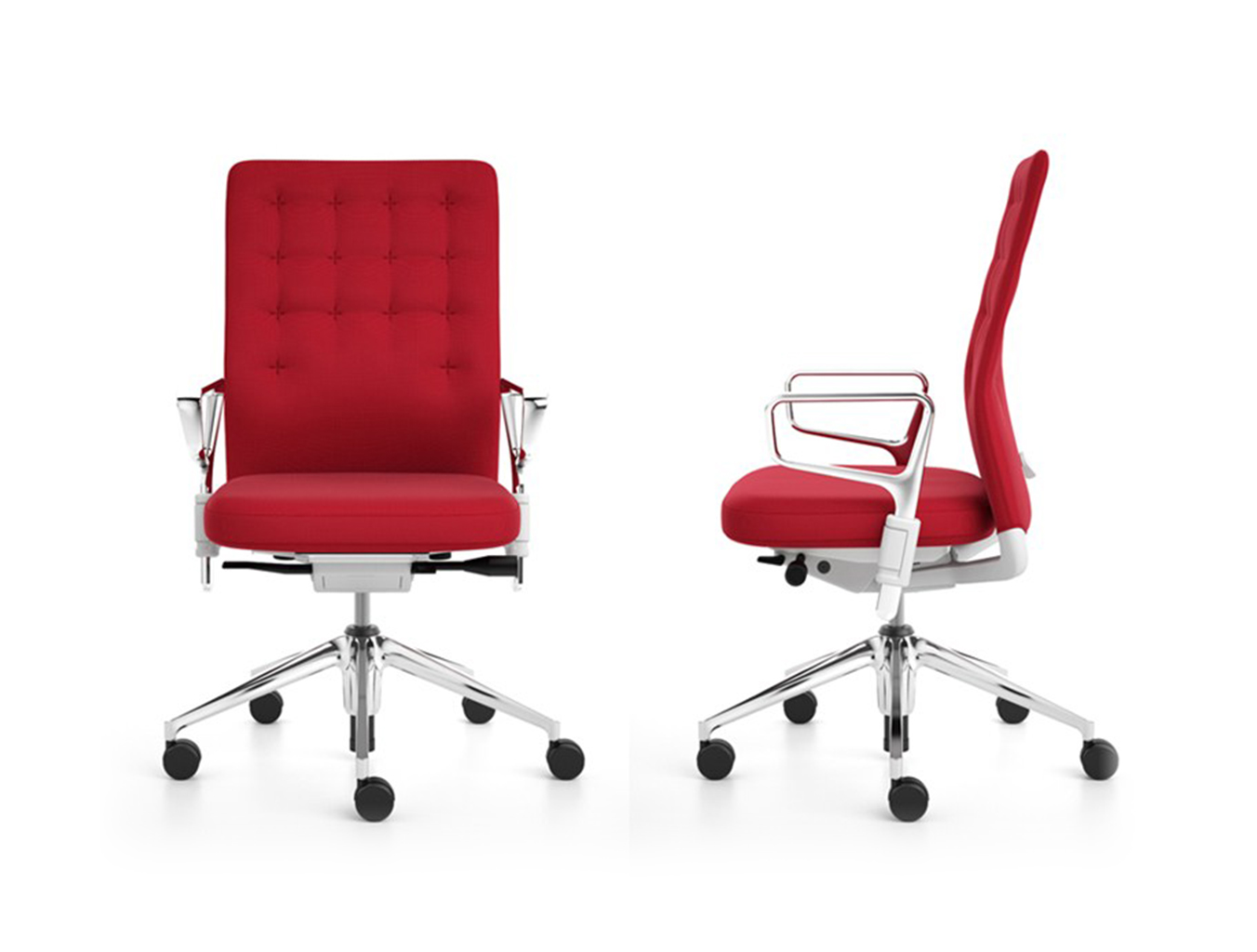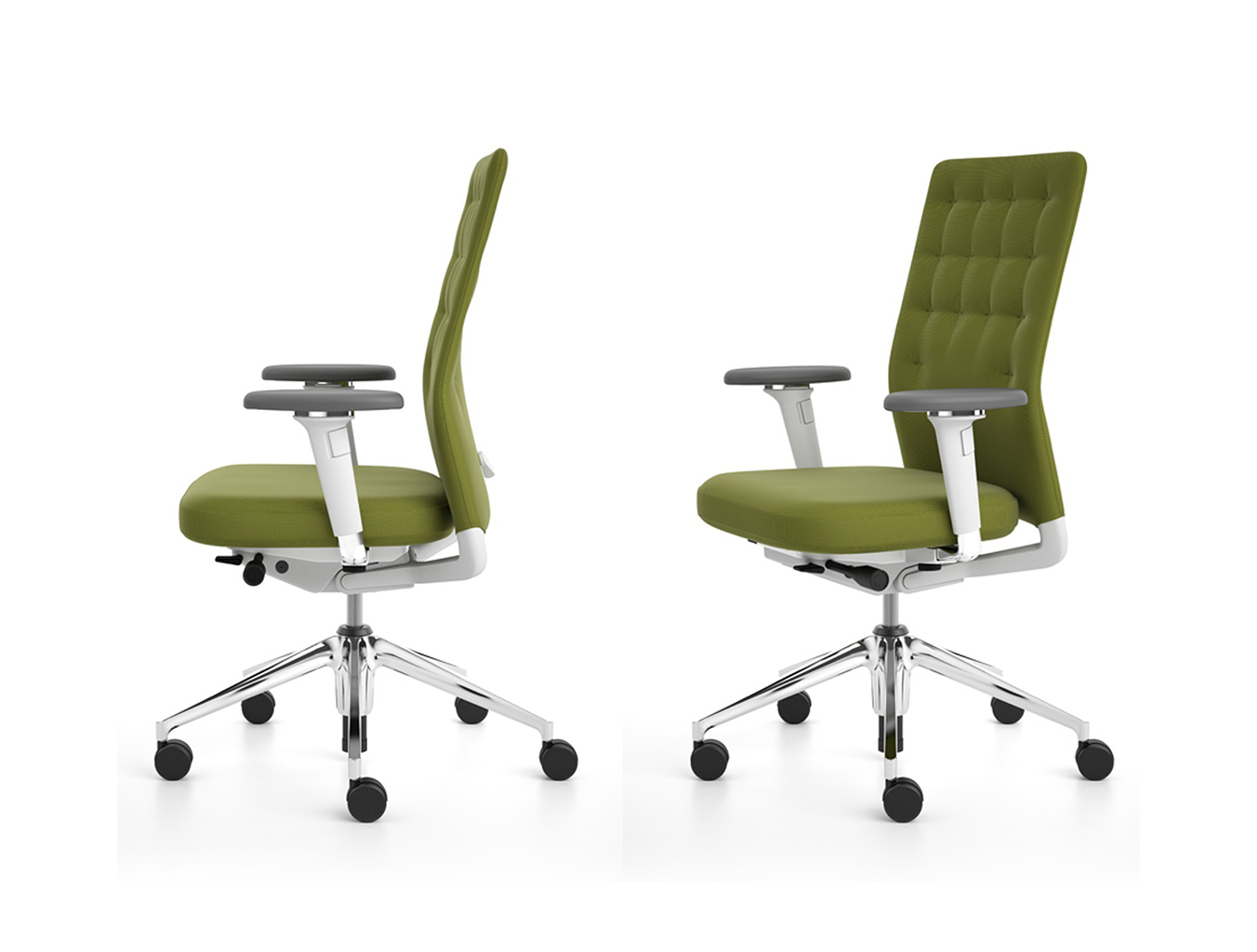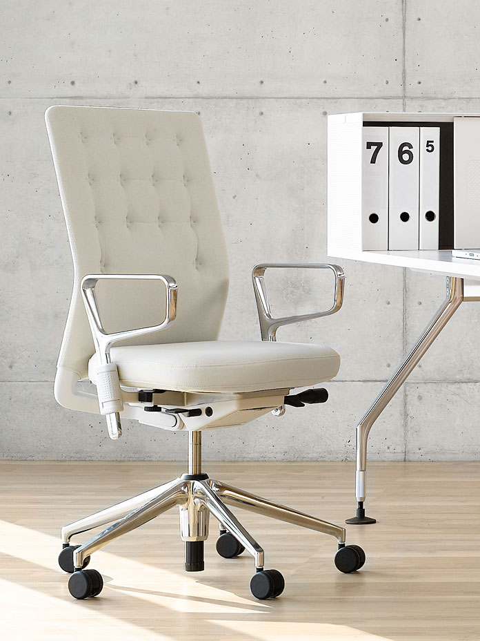 凭借其紧凑的衬垫,ID Trim办公椅的靠背传达出经典优雅和高品质工艺的感觉。 带有一体式腰部支撑的夹层结构提供了舒适的软垫靠背,同时几乎与网状靠背一样纤薄 - 为办公椅靠背提供了这两种结构类型的替代方案。