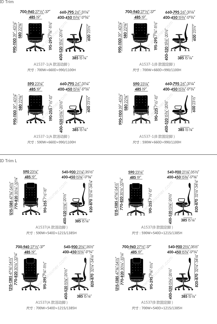 ID Trim 系列尺寸/示意图
