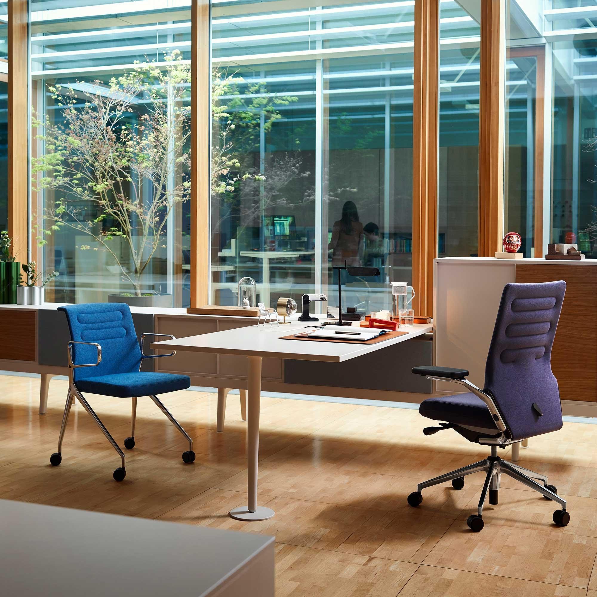 AC 5 Group的椅子可用于为现代设计办公室提供一致的美学。 AC 5 Swift会议椅是一个在敏捷团队中工作的关键部分:易于使用,带轮子的椅子非常舒适,移动非常方便。 其特有的角度支撑不仅是整个AC 5组共有的统一视觉元素; 其灵活的结构还提供了极大的运动自由度,并有助于动态坐下。