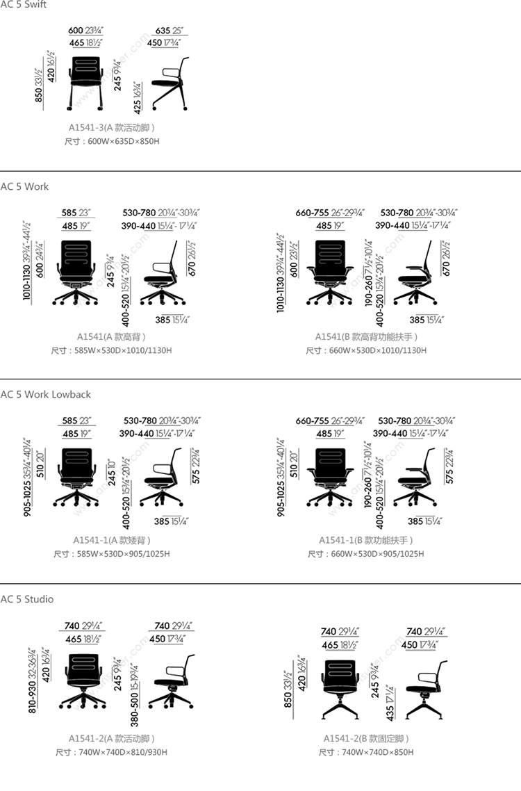 AC 5 Swift 系列尺寸/示意图