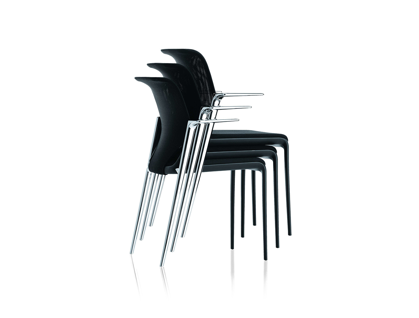 Medo Meda by Alberto Meda是一款坚固的会议和会议椅,拥有无可挑剔的设计和卓越的舒适性。 由于巧妙的制造工艺,前腿,靠背框架和座椅都是一体的。 带有镀铬腿的MedaSlim模型可叠放到5把椅子的高度。