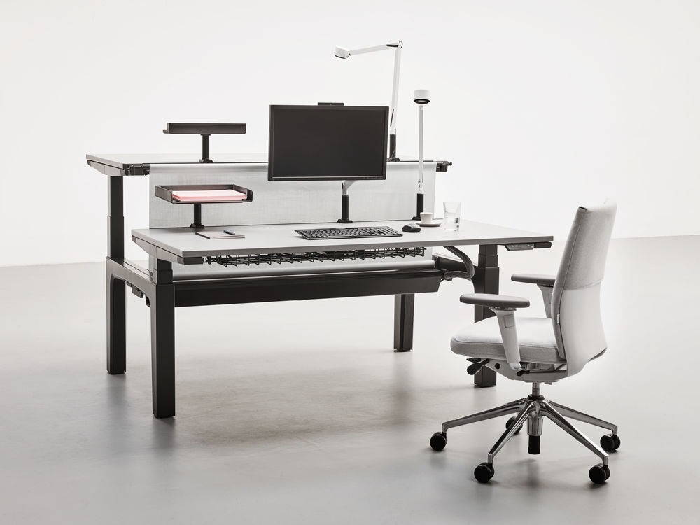 模块化办公桌系统CDS可以配置为单独的桌子,多个工作站的集群,宽敞的工作台或各种尺寸的会议桌。 所有产品均可在固定高度或手动或电动坐式解决方案中使用。 该系统采用标准底座设计,大部分预装有折叠腿。 这使得CDS能够满足对规划,使用,物流,装配和维护灵活性的最严格要求。
