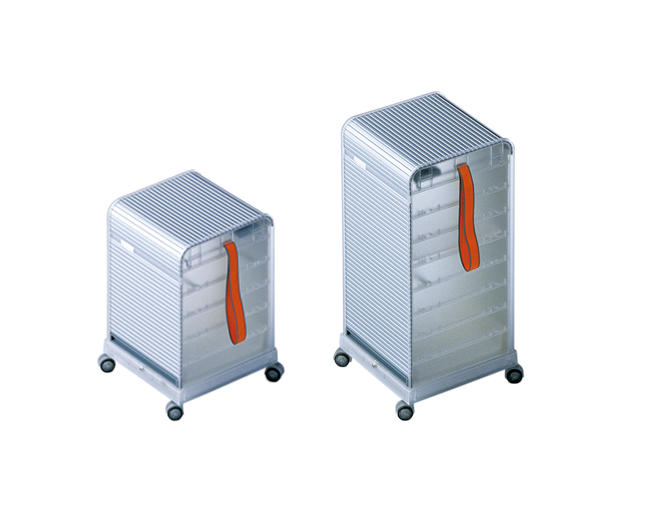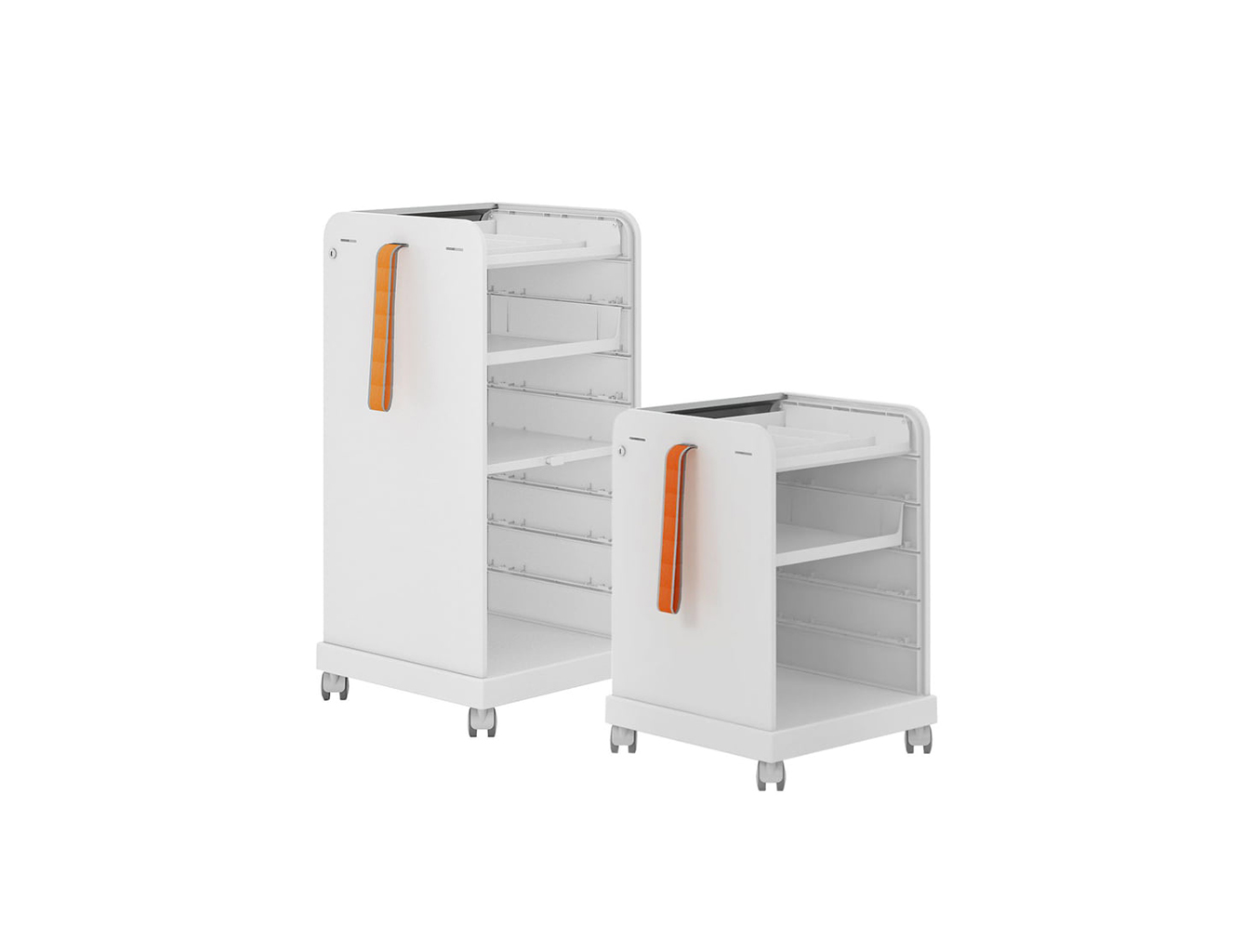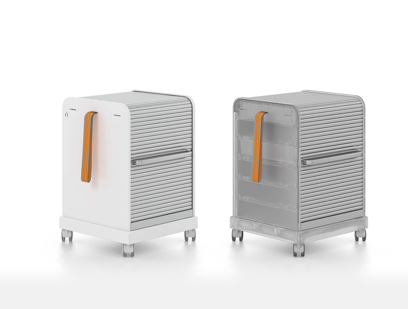 跟随我1和2是坚固,可锁定的移动基座,用于办公室和家庭。 装饰性拉带可以轻松地将手推车从一个地方移动到另一个地方。 一个(跟随我1)或两个(跟随我2)用于活页夹的货架空间和一个带有可移动托盘的集成存储隔间用于纸张和个人物品可以隐藏在移动基座的鼓形快门后面。 两种型号都可以单独配置可选的抽屉和搁板。 较高的Follow Me 2版本是站立高度表的理想伴侣。