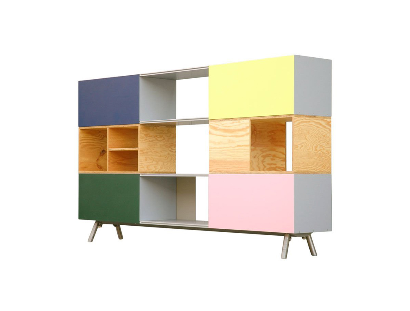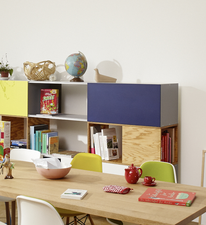 模块化结构,Kast存储单元以侧板作为基本版本开始。 对于中等高度版本,第二个基本模块放置在顶部以创建架子/壁柜组合。 在最高的版本中,添加了两个简单而坚固的木质元素。 Maarten Van Severen特别关注滑动门的颜色,这不仅强调了Kast的比例,而且给人一种清新和乐观的感觉。
