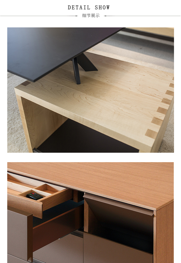 坚固的枫木与手指关节系统相结合,促进了被遗忘的细木工工作以及桌子上更多的技术细节。各种基础选项,包括:A形腿,木制空心立方体或封闭立方体。