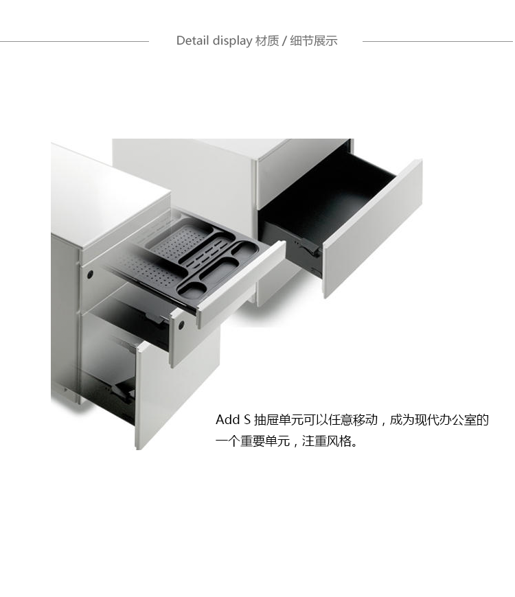 Add S抽屉单元可移动,成为现代办公室的一个重要单元,注重风格。