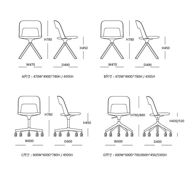 C:600W*600D*780H / 450SH