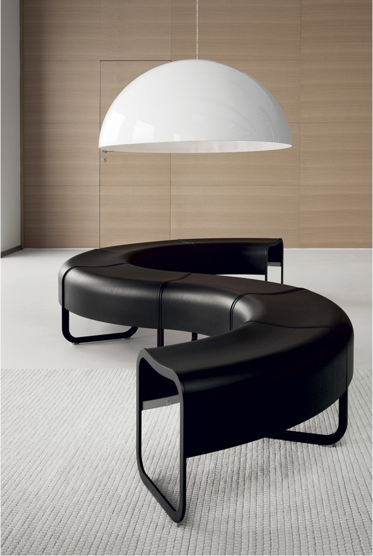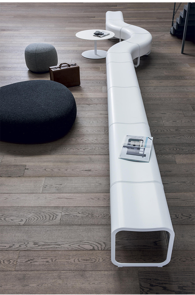 在日语中,“za”指的是一个安全的聚会场所,很久以前,寺院就是这样的地方。受这一古老的好客传统的启发,信和友子自上而下创造了一个优雅的座位系统,是等候区、博物馆和商店的理想选择。每一个单一的元素,有一个轻微的形状,曲折的轮廓,可以无限地倍增。随着直线和弯曲元素的交替,它创造了一个令人惊奇的世界的形状。所有元素都有一个特殊的金属带。这次会议的特点是昨天和今天的人们的历史。