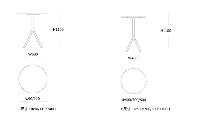 FORK 咖啡桌/餐桌 系列尺寸/示意图