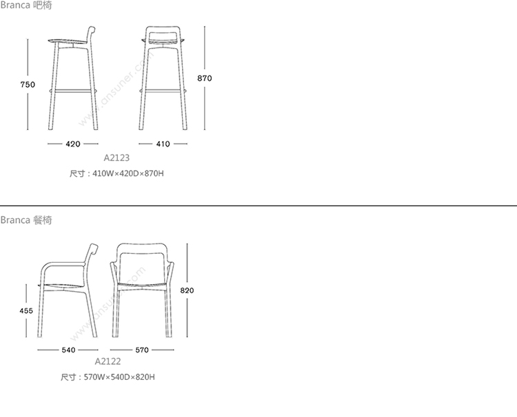 Branca 系列尺寸/示意图