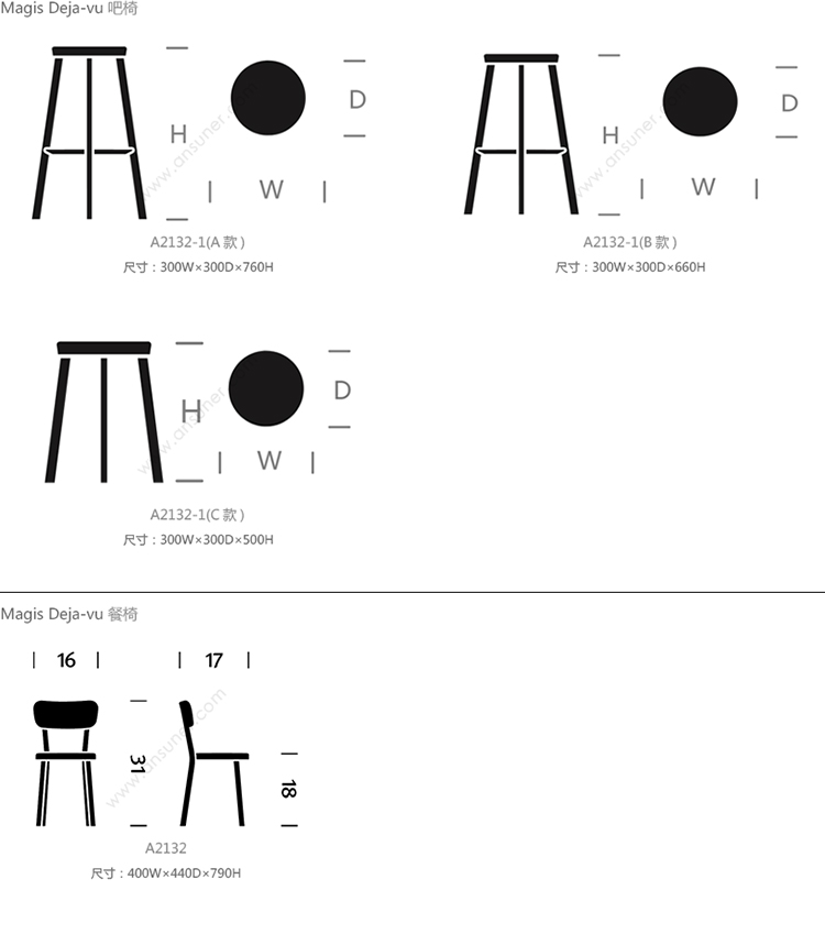 Magis Deja-vu 系列尺寸/示意图