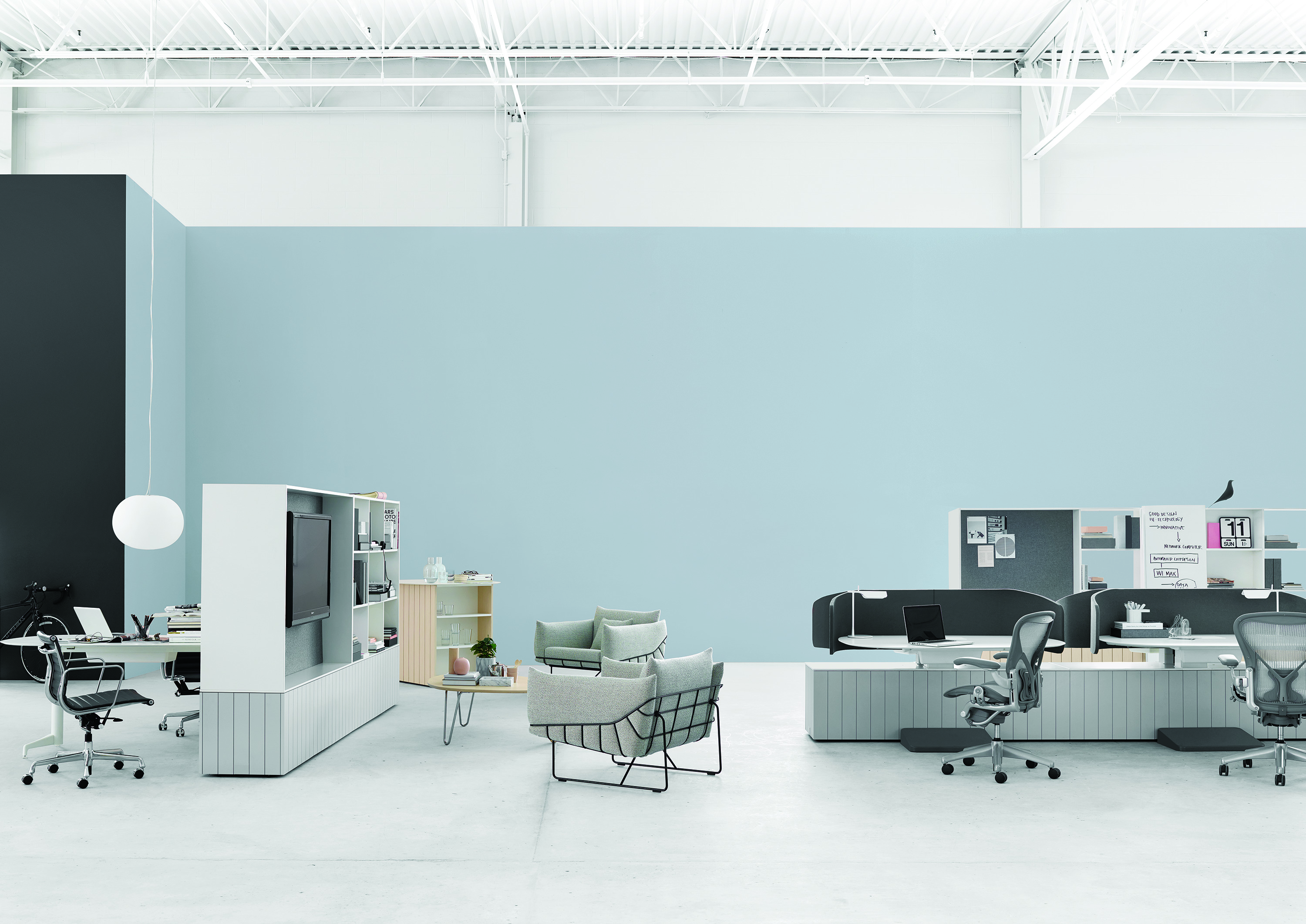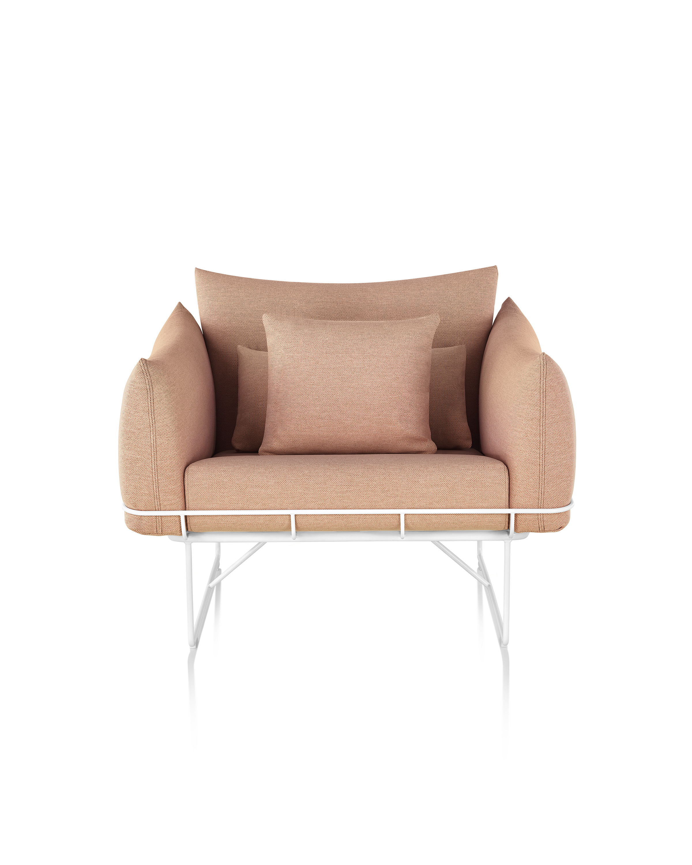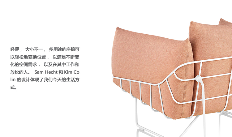 从视觉上说,柔软和体积包含在一个正式的框架,线框沙发组例证了一个反复出现的主题山姆赫克特和金科林:对比紧张。该设计的外部结构是由钢丝形成的——这是赫尔曼米勒经典设计中长期使用的材料,因为其强度和耐久性。车架内的坐垫是轮廓分明的,赫尔曼米勒(Herman Miller)最初为医疗行业开发的一种悬架技术让坐垫更加舒适。腰椎和抱枕是祭品的全部。轻便,大小不一,多用途的座椅可以轻松地变换位置,以满足不断变化的空间需求,以及在其中工作和放松的人。海克特和科林的设计体现了我们今天的生活方式。选择包括白色或黑色框架与多个室内装潢选择在两人和三人座位的沙发