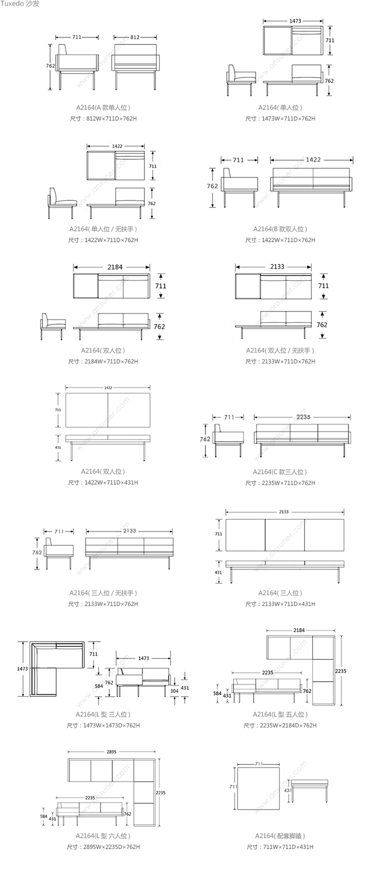 Tuxedo 系列尺寸/示意图