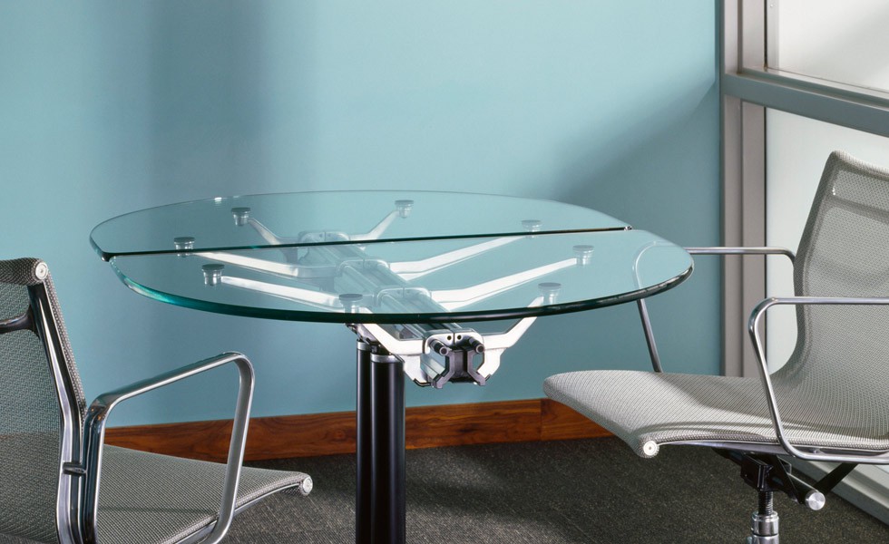 独特的中央铝制横梁使这款由Bruce Burdick设计的会议桌拥有出众的外观。这款精致的会议桌成套提供,也可以选配组件定制(包括玻璃或石制的两种顶面形状),外观与众不同,功能强大,适应性极佳。