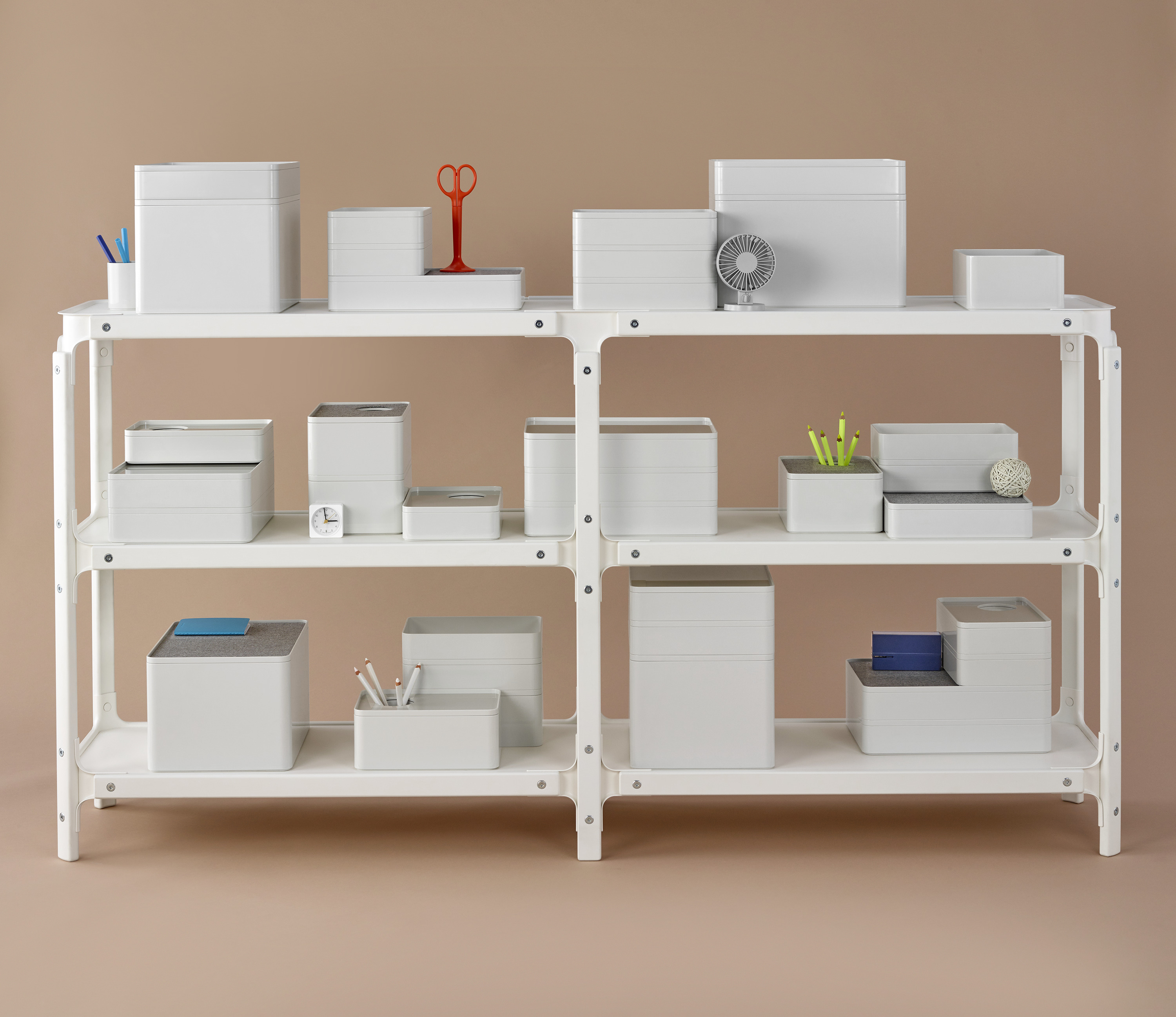 通过结合木材的温暖和钢的强度,这个模块化的搁置系统由Ronan和Erwan Bouroullec设计,看起来美丽而优雅。英俊,友好,耐用,它的多功能设计组织和存储项目一样在随意的场合,自信地就像在优雅的场合一样。
