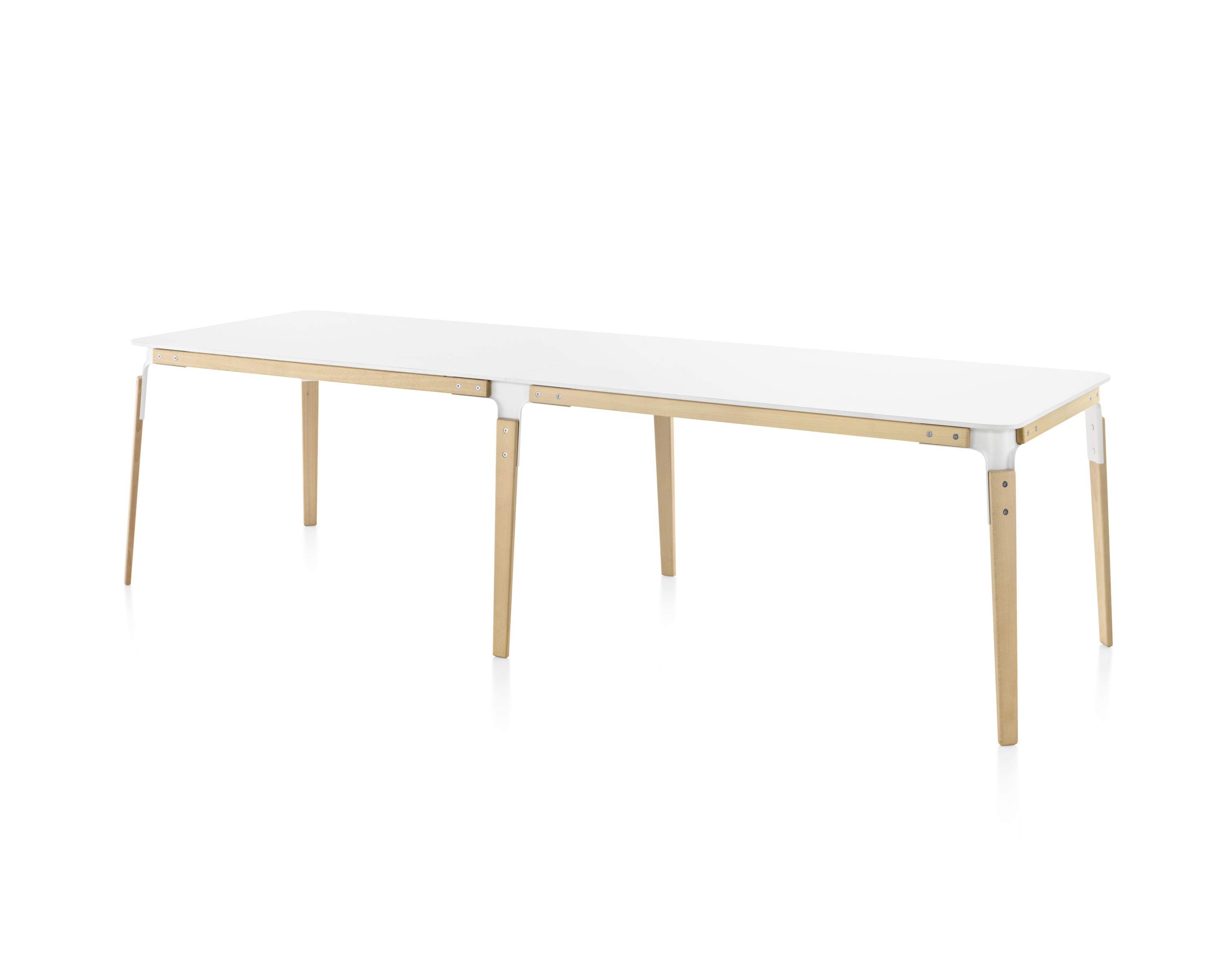 如果你对这张可爱的、持久的桌子实在是爱不释手,那么也许是时候添加一些东西了。矩形钢木桌系统和扩展可在相同的完成与原来,并提供额外的空间会议和餐饮。