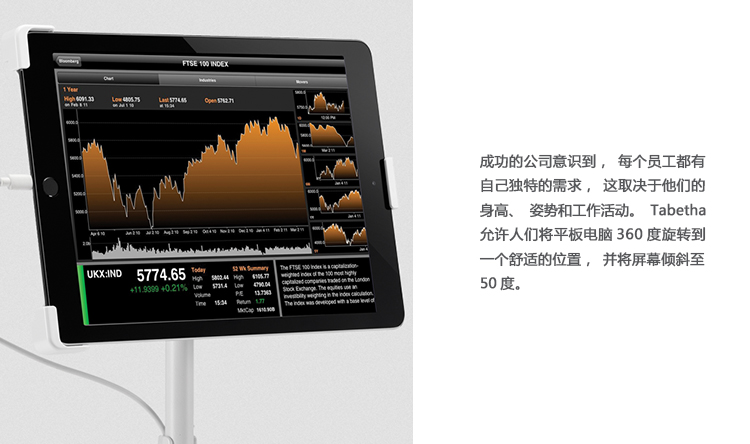 最成功的工作场所让人们可以自由选择最佳工作地点和方式。 独立式Tabetha平板电脑支架鼓励灵活性,支持个人专注于详细任务或与他人合作解决问题。 Tabetha允许人们在任何工作台面上调整首选平板电脑的高度和方向,以便他们可以选择最有效率的位置和位置。