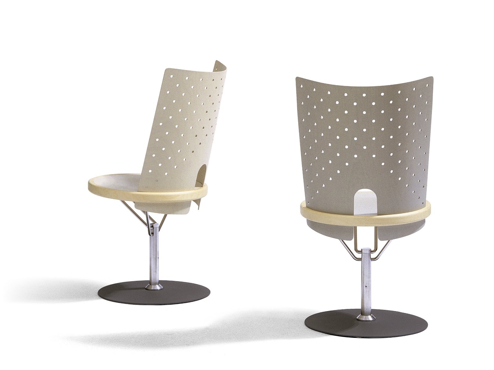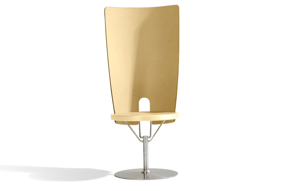 在钢旋转底座具有不锈钢冠上的涂漆钢脚板。座椅轮缘在压缩模制的在桦木单板层胶桦木帘布层。座椅中心和靠背。可选的扶手。座椅高度445毫米,总高度925毫米,总宽度510毫米,总深度620毫米,底座Ø480毫米,重量kg 12,5。