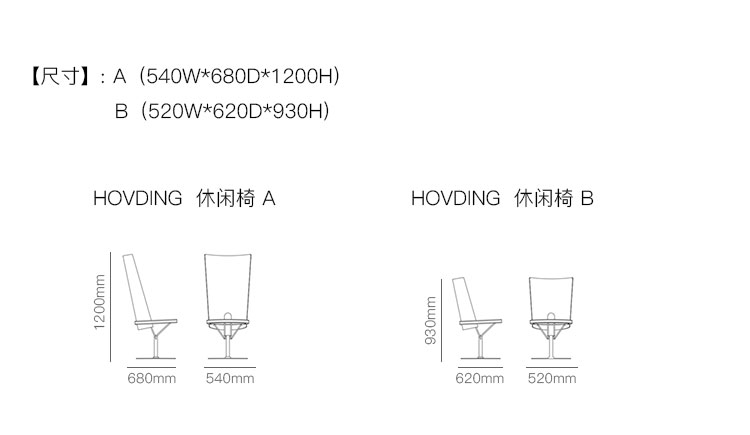 HOVDING  休闲椅 系列尺寸/示意图