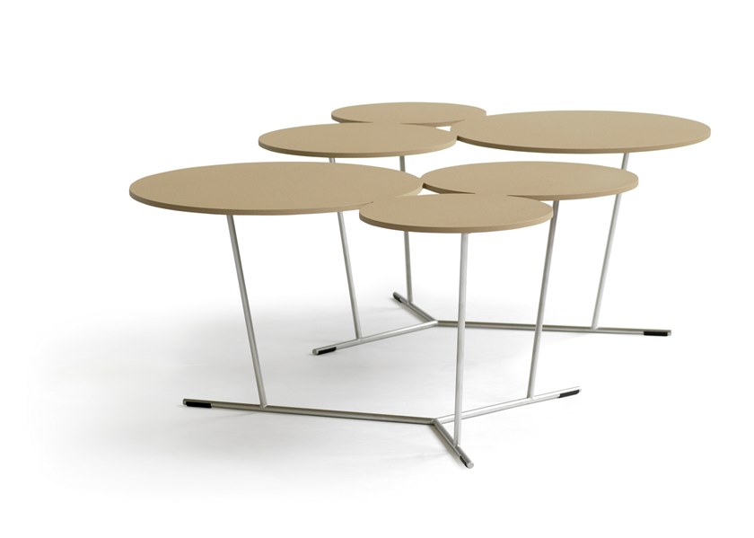 气泡的俏皮形状打破了严格和方形的环境。具有三种不同大小的程式化气泡的装饰性图形桌子。如果您只想要更多,可以对其进行调整。它们会渗入房间。哑光烤漆桌面采用激光切割铝制成,并由不锈钢结构支撑。有多种颜色可供选择,从黑白到沙子,赤陶,无烟煤和粘土。可在室内和室外使用。