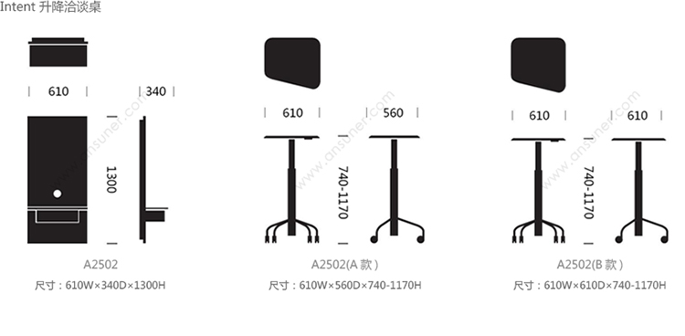 Intent 升降洽谈桌 系列尺寸/示意图