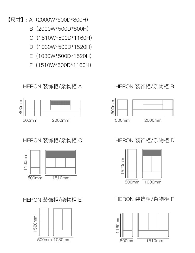 HERON 装饰柜/杂物柜 系列尺寸/示意图