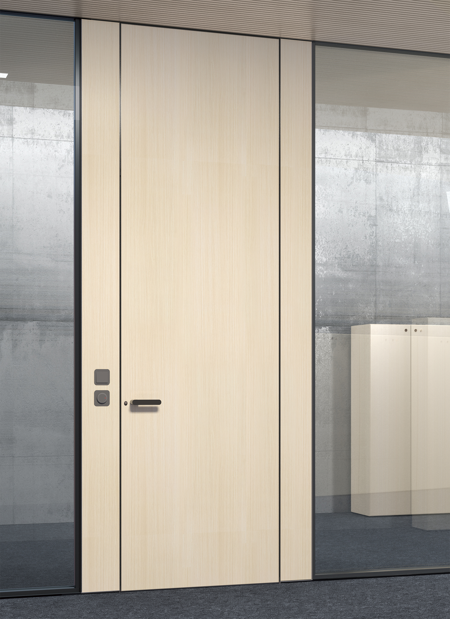 I-Wallflush源自于将历史性的I-壁空间分区的概念作为物理的可见障碍物进一步发展的想法,从而进一步减少了中央和偏移分区位置中多余的一切(连接,重叠,玻璃珠,可见铰链) ,以恢复玻璃以其纯净透明。 新系统是建立在冲洗的概念,没有从可见的水平或垂直廓线中断,只是一个视觉的连续性,让优先工作空间的布局。 另一个挑战是需要确保最佳的机械和声学性能(在隔音方面),同时又不影响有效的安装时间,以及玻璃和4akustik(用于吸音)之间的常规集成,从而确保生产流程和废物的优化。