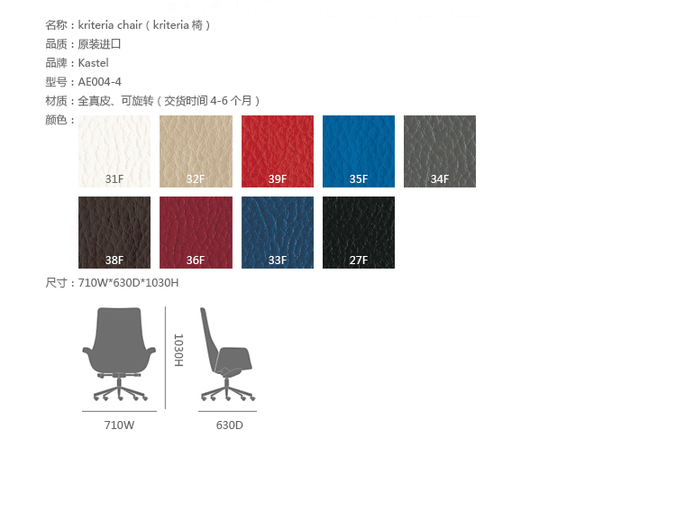 暂Kastel是一个在室内装饰领域极具影响力的公司,该公司具备高水平的综合生产能力,是一个充满活力的公司。Kastel公司产品多种多样,包括办公座椅,社区座椅和家庭座椅等等。Kastel在对人体工程学进行深刻研究之后,制定了现在的生产线,产品的设计以舒适为主,在生产过程中每一步都严格遵循这一宗旨,为客户提供高性能的产品,满足客户对舒适的基本要求。这也是Kastel公司的经营理念。kimera系列办公椅采用全真皮扪面、可同步升降、旋转、可倾仰锁定,符合人体工学,高档舒适,是办公,会议的理想选择。