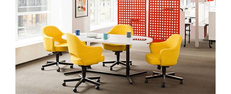 In his groundbreaking collection of 1957,Eero Saarinen transformed executive seating into a fluid,sculptural form.Recognizing the importance of user comfort,Saarinen became the first to construct a chair shell from fiberglass,a pliable material that flexes the In response to body weight. The chair is available with and without very different,and the features metal or wood legs,or a swivel base.The armless chair with a plastic back, ideal for cafe applicatons,is a recent reintroduction.