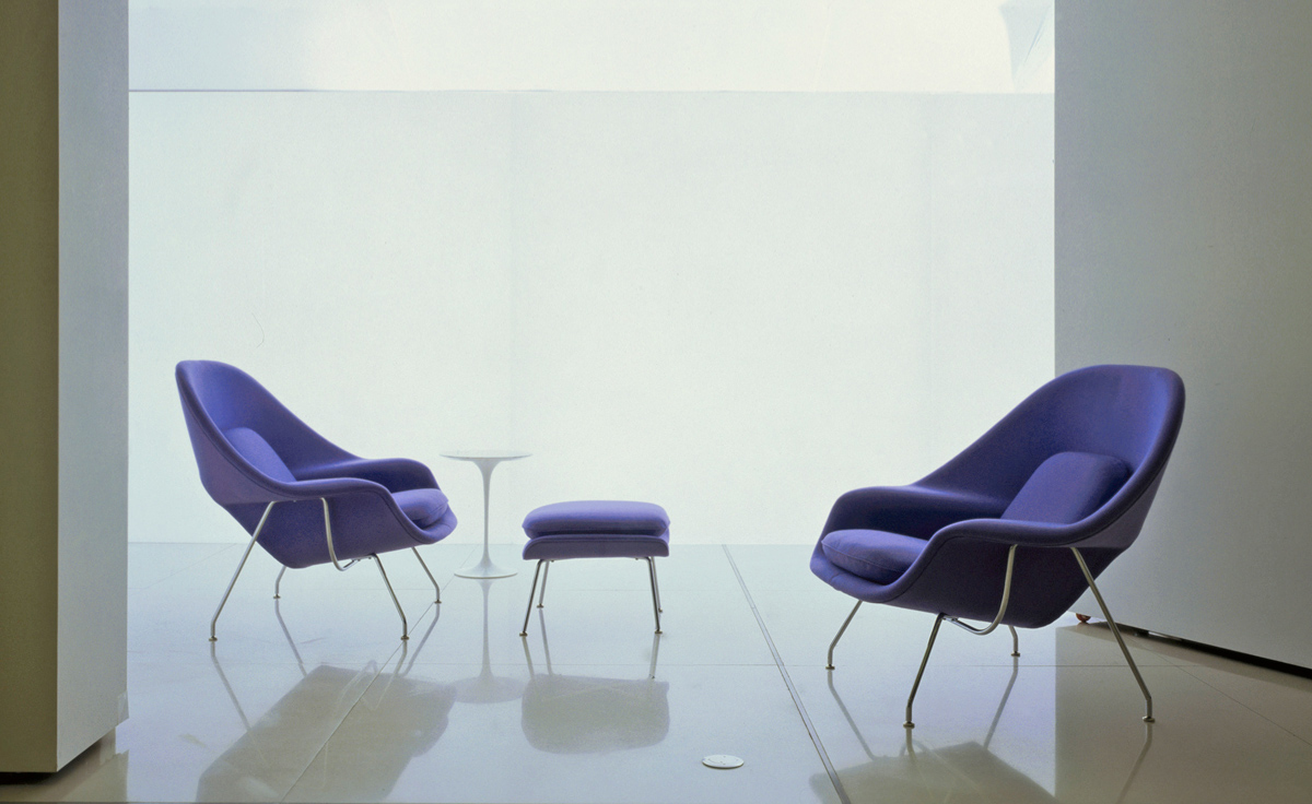 Womb Chair 的基本构造是由抛光镀铬或雾面钢管底座,以一体成型的泡棉包覆框架所组成。 Eero Saarinen 设计这张椅子挑战了一般世俗的规则,打破窠臼,树立了新的现代设计和舒适的标准,充分显示他的高超才华。