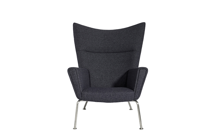Wing Chair 典型的 Hans J. Wegner 設計,雕塑般的立體線條,讓這張椅子像藝術品般的獨佔一方。寧靜、祥和、平衡的鮮明的個性,來自椅背的弧度、轉角的收邊、肩線的溝槽和襯墊扶手。