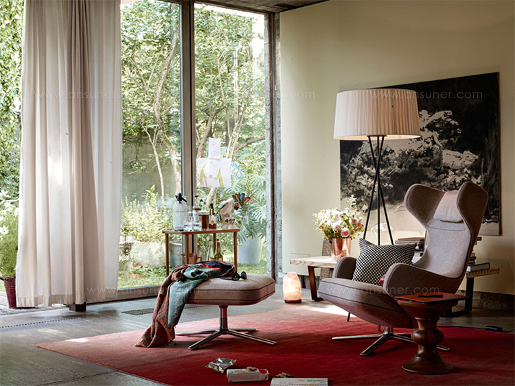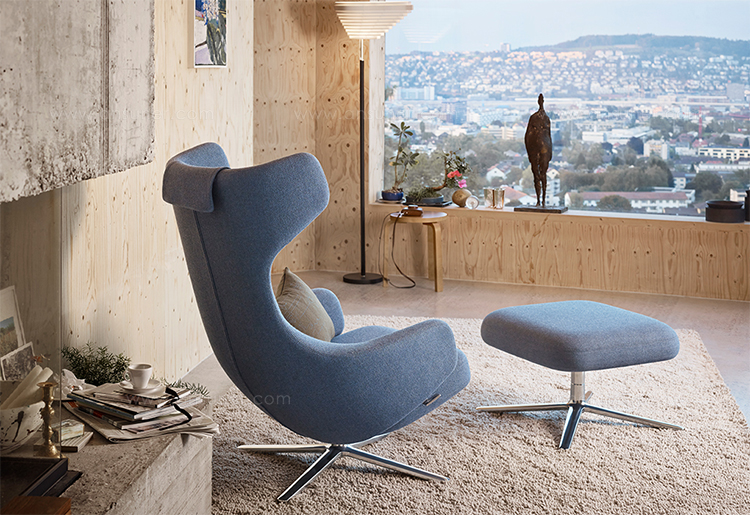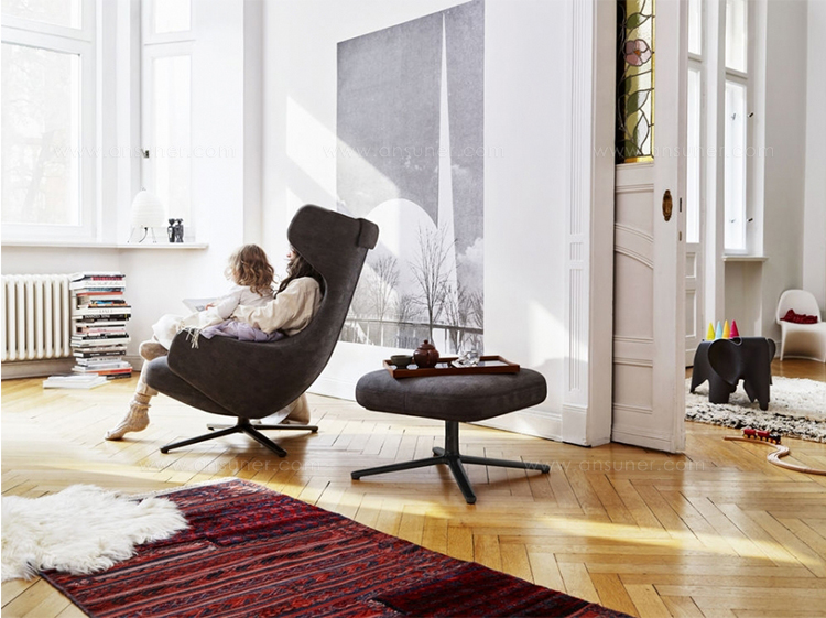 “grand repos lounge chair and ottoman(grand repos 休闲椅&脚踏)由设计大师Antonio Citterio所设计的独特的,绝无仅有的休闲椅系列,椅子的创作面临的挑战如同伊姆斯夫妇当初设计著名的伊姆斯休闲椅一样,但正因如此,才能成为绝世经典。grand repos系列休闲椅采用钢制铝合金脚架、聚氨酯海绵填充、高级布艺扪面,可随意调整坐姿和高度,也可以放平躺,配上舒适的羽毛衬垫,无论阅读或者休憩,都非常舒服,符合人体工学,高档舒适,是办公,会议的理想选择。意大利设计师和建筑师 Antonio Citterio赋予了这边椅子永恒的优雅气质与无与伦比的舒适,是当代设计的经典,无论用在办公、商业、家庭都是非常高贵大气的。”