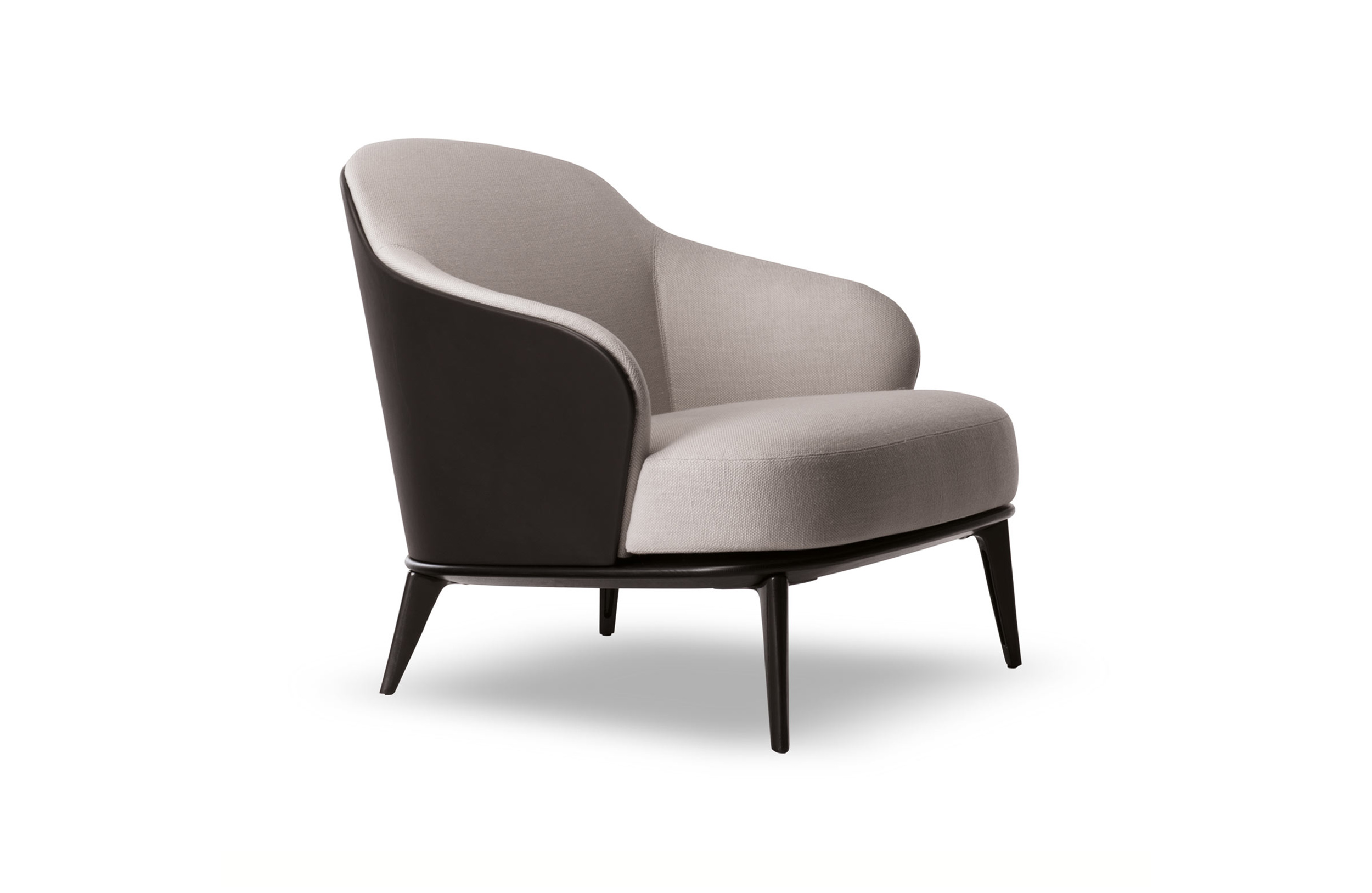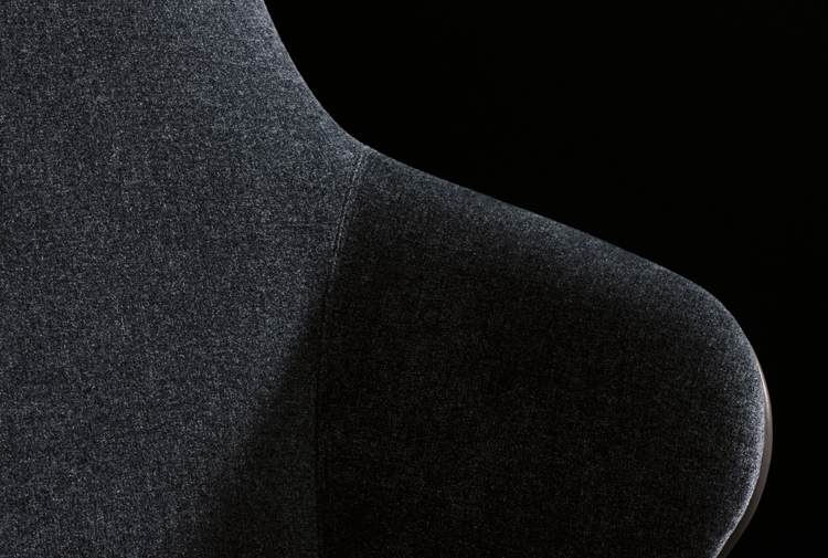 莱斯利“餐厅”小扶手椅展现出圆润而又迷人的造型和同名扶手椅的平衡比例。其特点在于冷模注塑而成的弧形靠背,搭配柔软的填充物。一丝不苟的覆面工艺打造完美的外观效果。Leslie “Dining”可以完全采用织布覆面或者皮革覆面,也可以选择混搭,靠背为织布覆面,坐垫则包覆皮革,体现两种材料之间的完美对比效果。Leslie “Dining” 小扶手椅有三种样式:Pewter色漆面的钢制固定基座,或是Pewter色漆面的压铸铝支撑腿。旋转式基座也采用Pewter色漆面的压铸铝支撑腿。