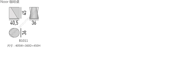 Noor 咖啡桌 系列尺寸/示意图