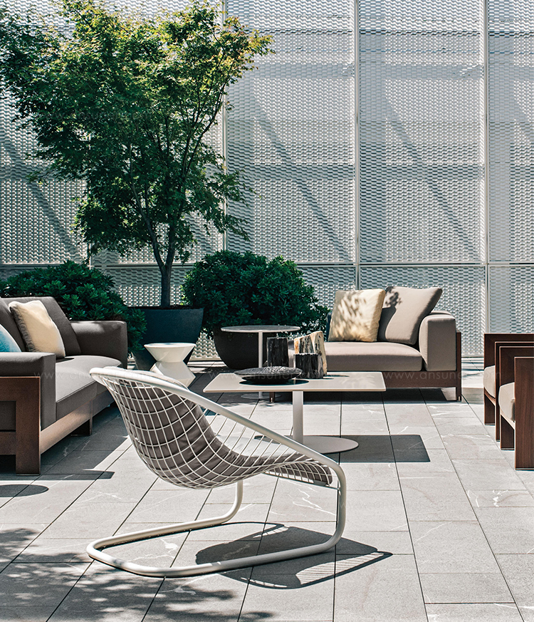 金属网的结构十分轻盈,似乎是要挑战地心引力,产品用途十分广泛,可以与Minotti系列的所有沙发搭配,呈现丰富多彩的组合形式。