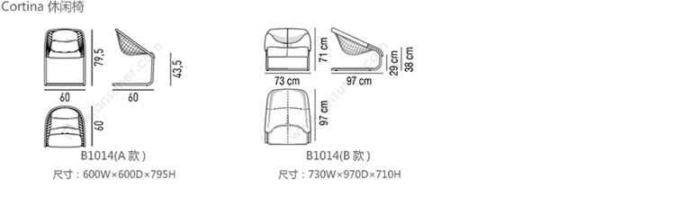 Cortina 休闲椅 系列尺寸/示意图