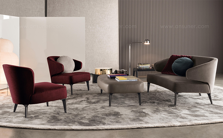 重叠的造型搭配珍贵的材质,这就是Benson的独特之处。木材的质感和金属的光亮感完美展现出雕塑般的造型。Benson边几可以直接放置在地面上,有两种不同的尺寸可供选择,以满足不同的功能需求。尺寸为120x95厘米的版本,基座为椭圆形,上方面板为圆形,配备的机械装置可以使其旋转360度,增强边几的延展性,使其更加靠近沙发座椅。直径为46厘米,高度为38厘米的版本,专门用于放置在沙发和扶手椅的侧方,有以下组合可供选择:一种是下方台面为亮面乌木,上方台面为亚光铜色板材;另一种是下方台面为Moka色亮光漆,上方台面为金色亮光漆。